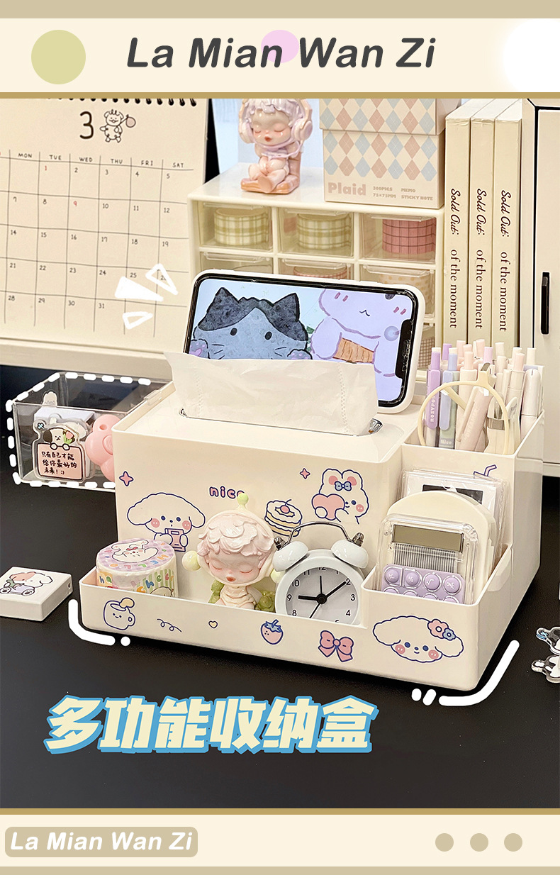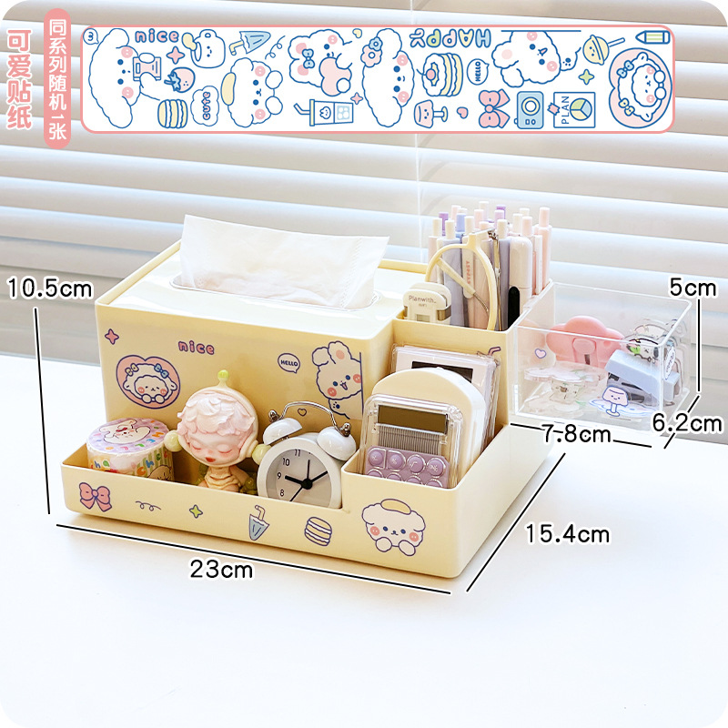 다기능 데스크탑 보관함 티슈 박스 학생 책상 문구 정리 보관함 사무실 티슈 박스 펜 홀더스토어 가기
