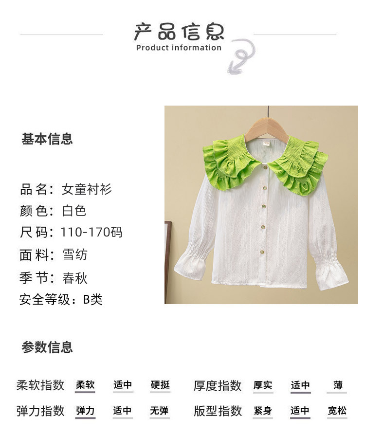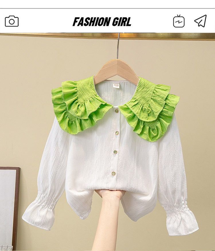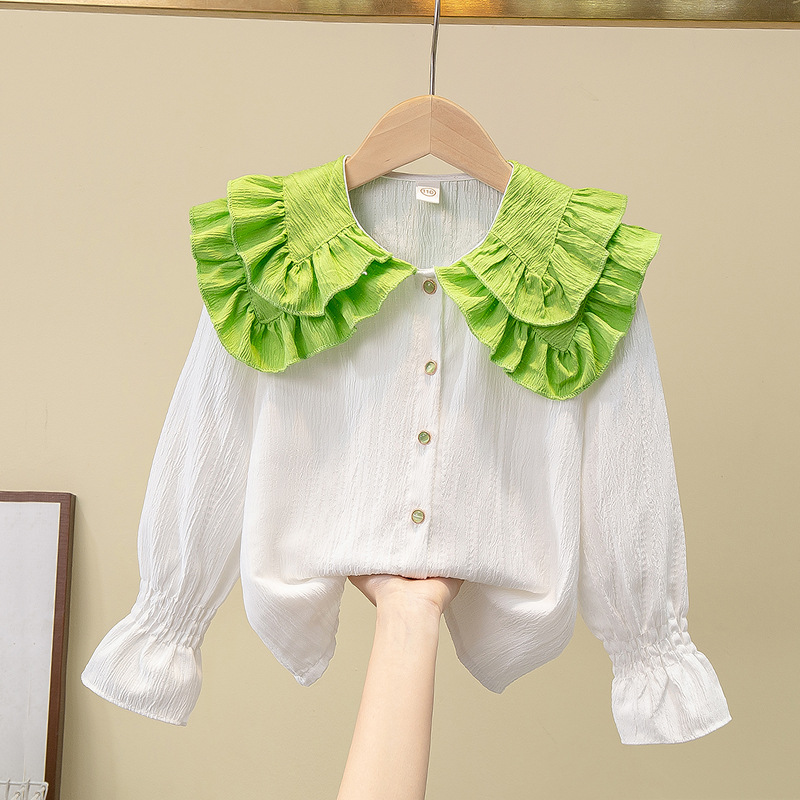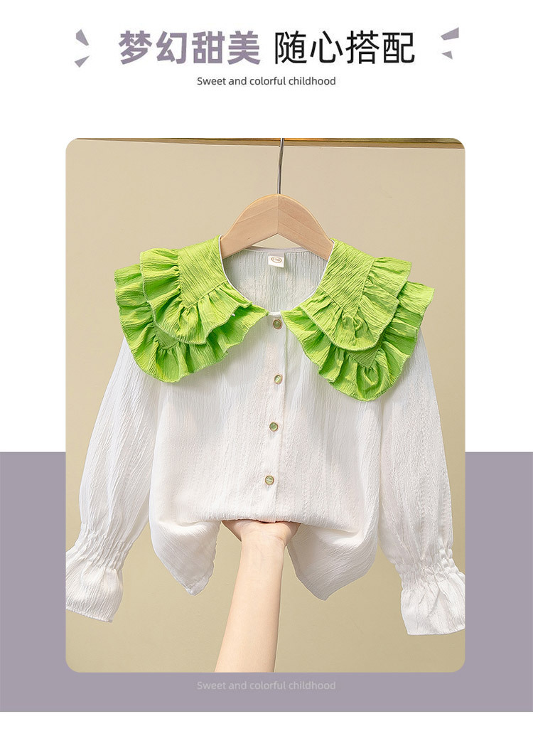 여아 긴팔 셔츠 2026 봄 가을 신상 중대형 아동용 쉬폰 셔츠 상의 러플 재킷 해외배송