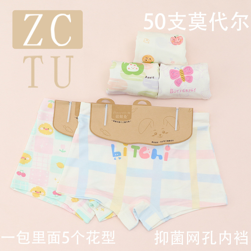 행운의 토끼 어린이 속옷 소녀 50 카운트 모달 코튼 학생 중대형 어린이 복서 스타일 멋진 속옷스토어 가기