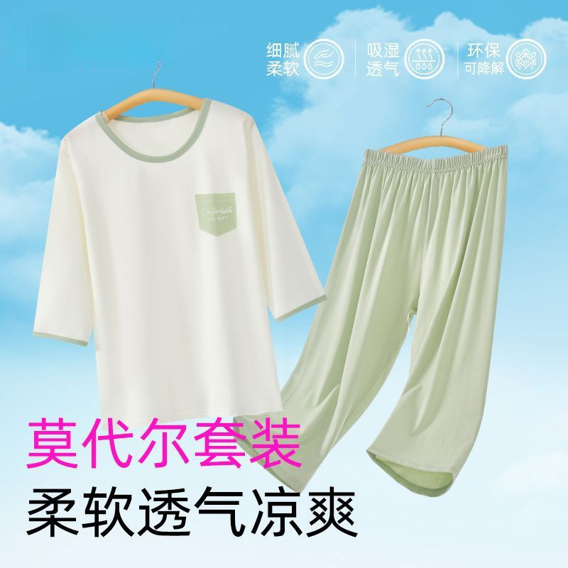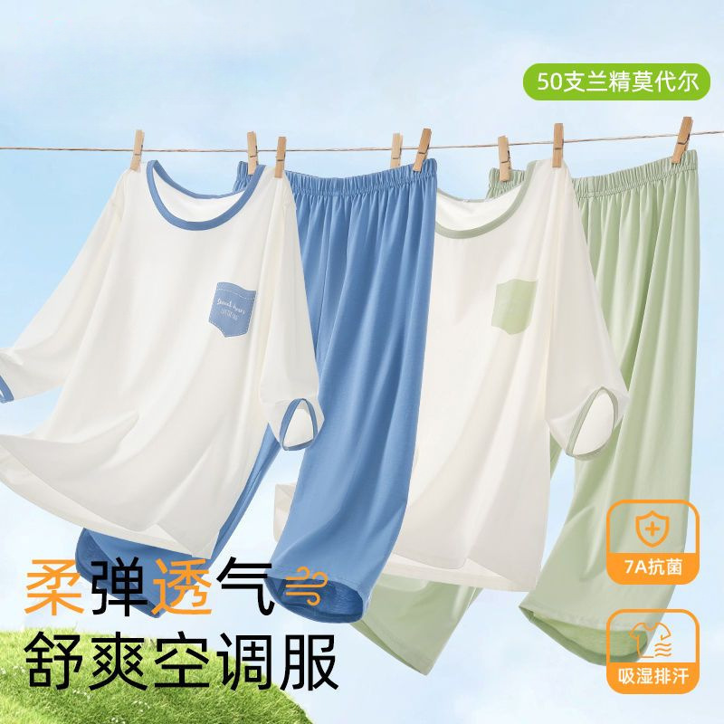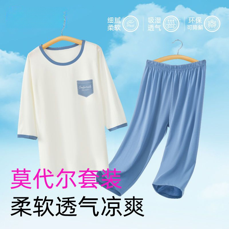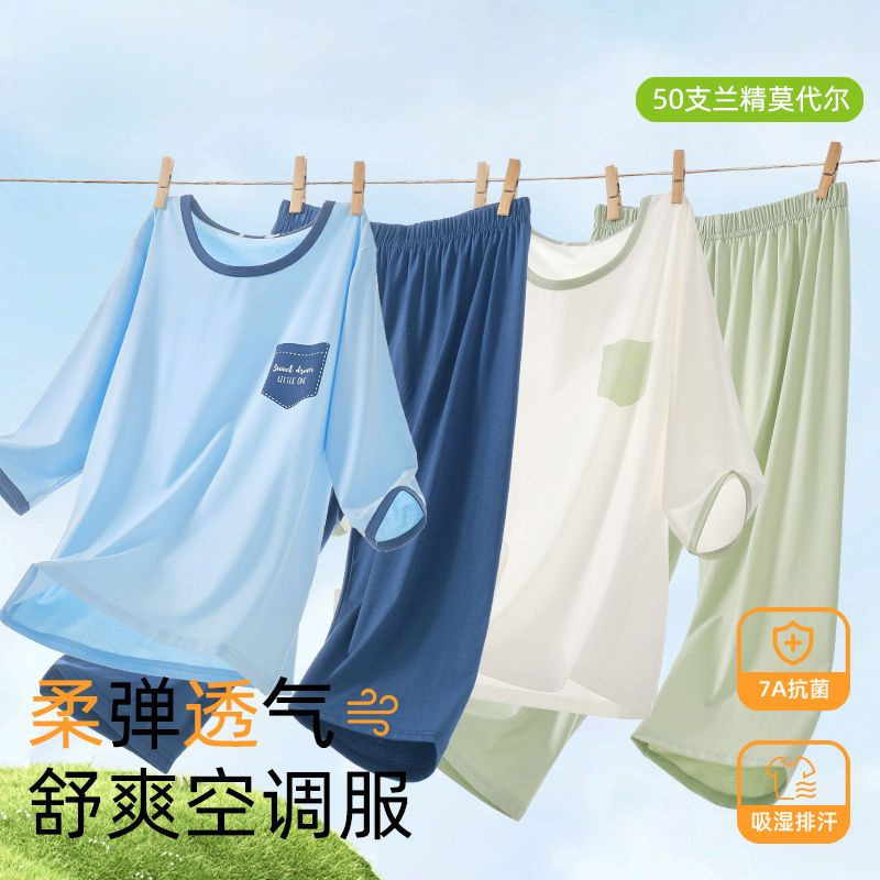 Fenton Modal 소년 잠옷 소년과 큰 어린이를위한 반팔 얼음 실크 여름 얇은 어린이 에어컨 가정 의류 세트