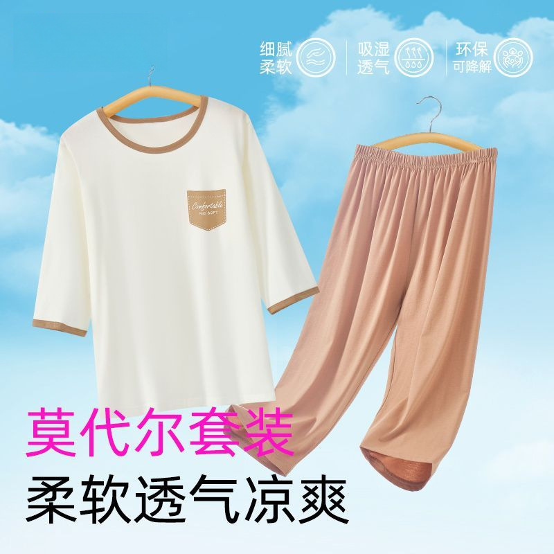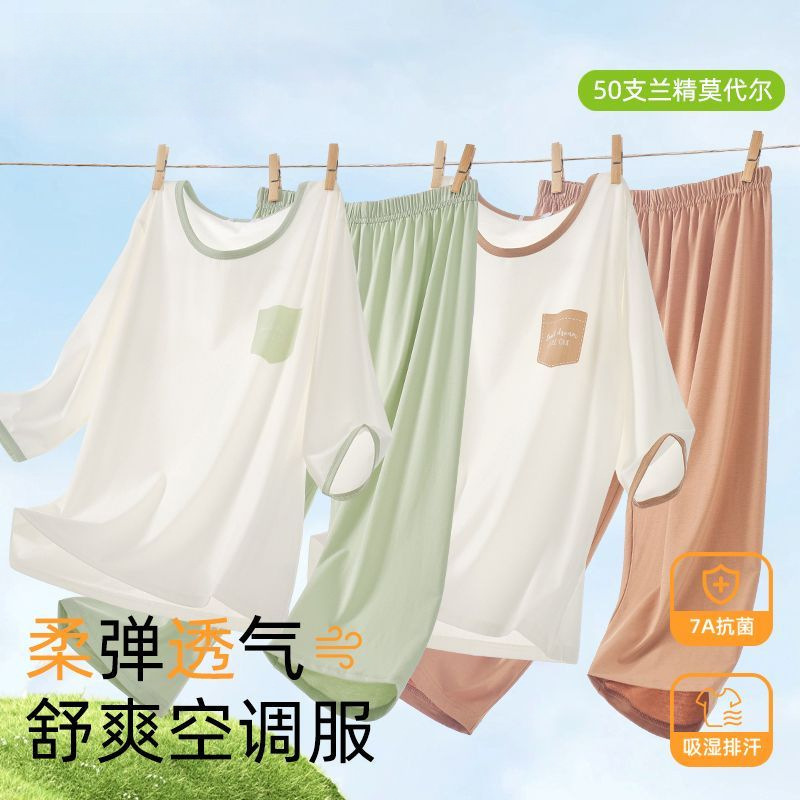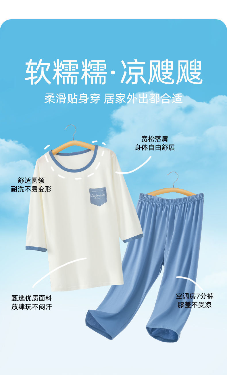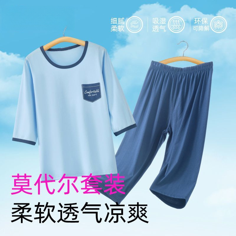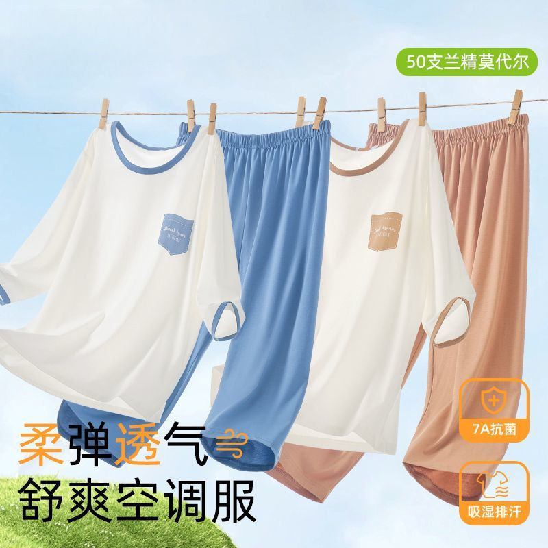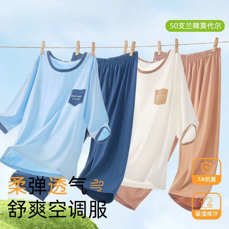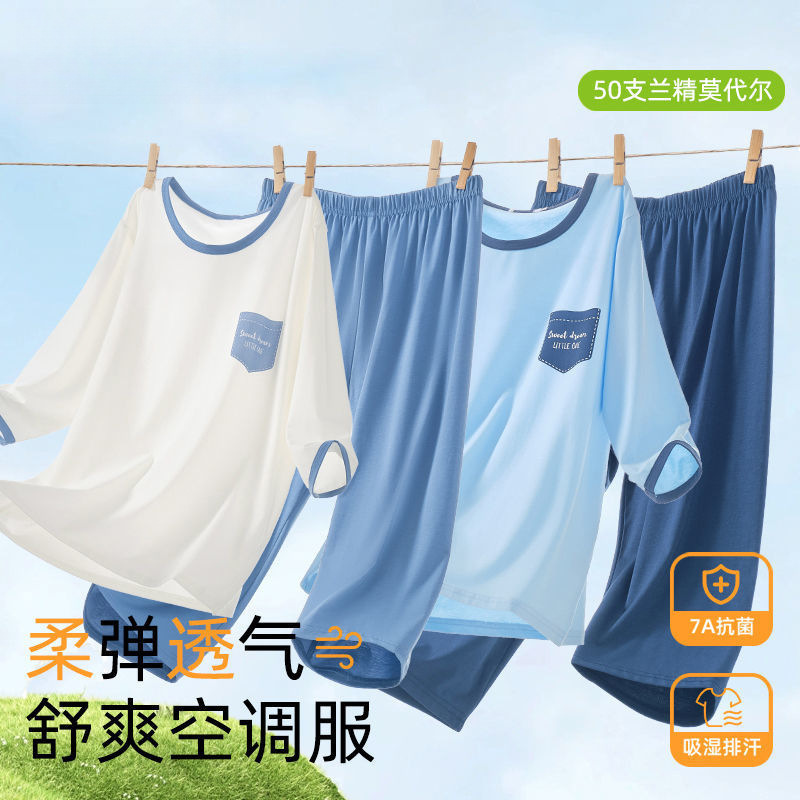 Fenton Modal 소년 잠옷 소년과 큰 어린이를위한 반팔 얼음 실크 여름 얇은 어린이 에어컨 가정 의류 세트스토어 가기