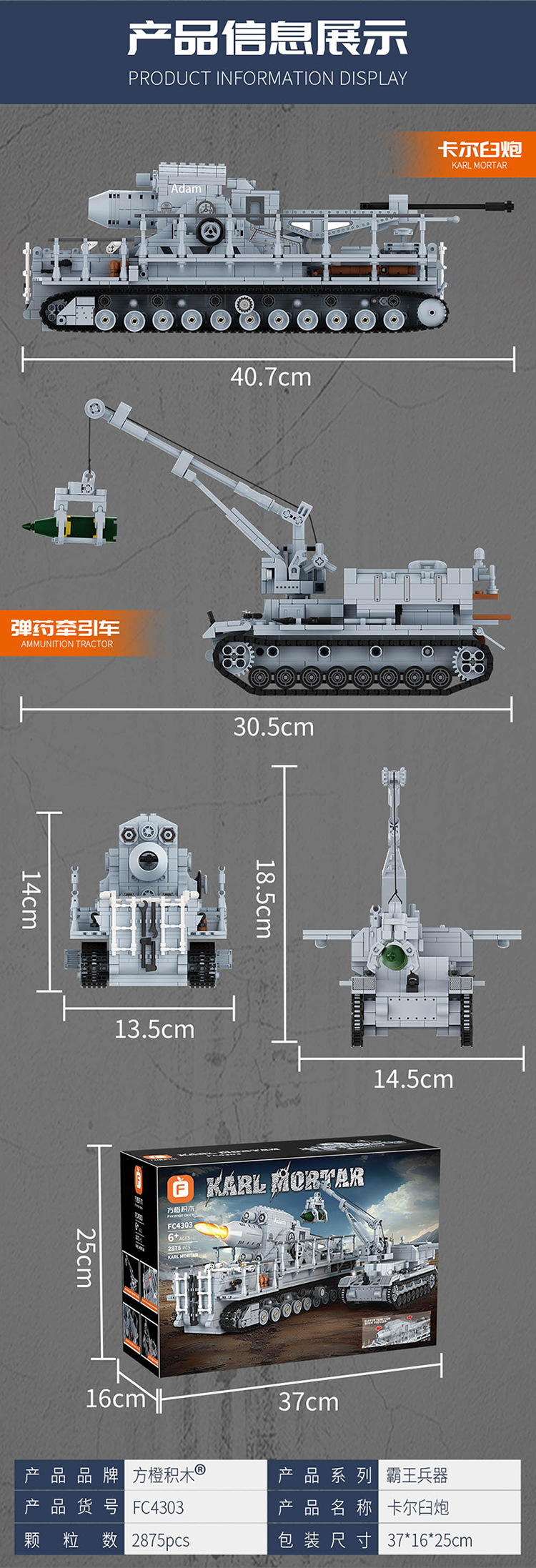 Fangcheng 새로운 제품 FC4303 군용 칼 포탄 트랙터 빌딩 블록 어린이 소년 조립 장난감 국경 간 배송스토어 가기