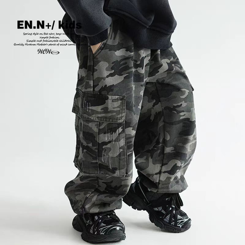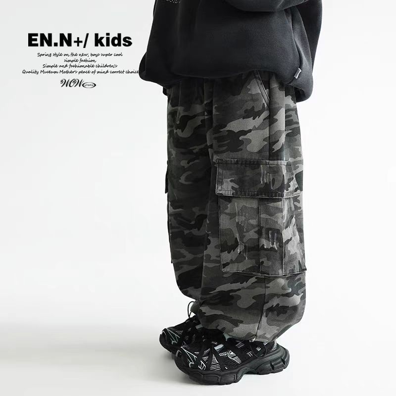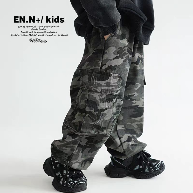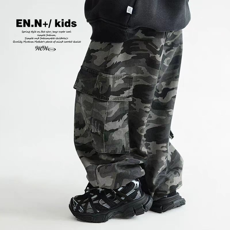 소년 위장 작업복 2025 새로운 봄, 가을 중대형 어린이 힙합 중립 스트레이트 슈퍼 쿨 롱 팬츠스토어 가기