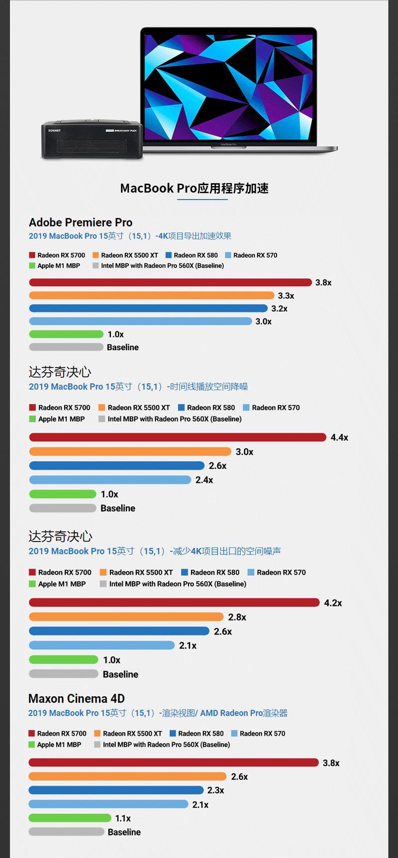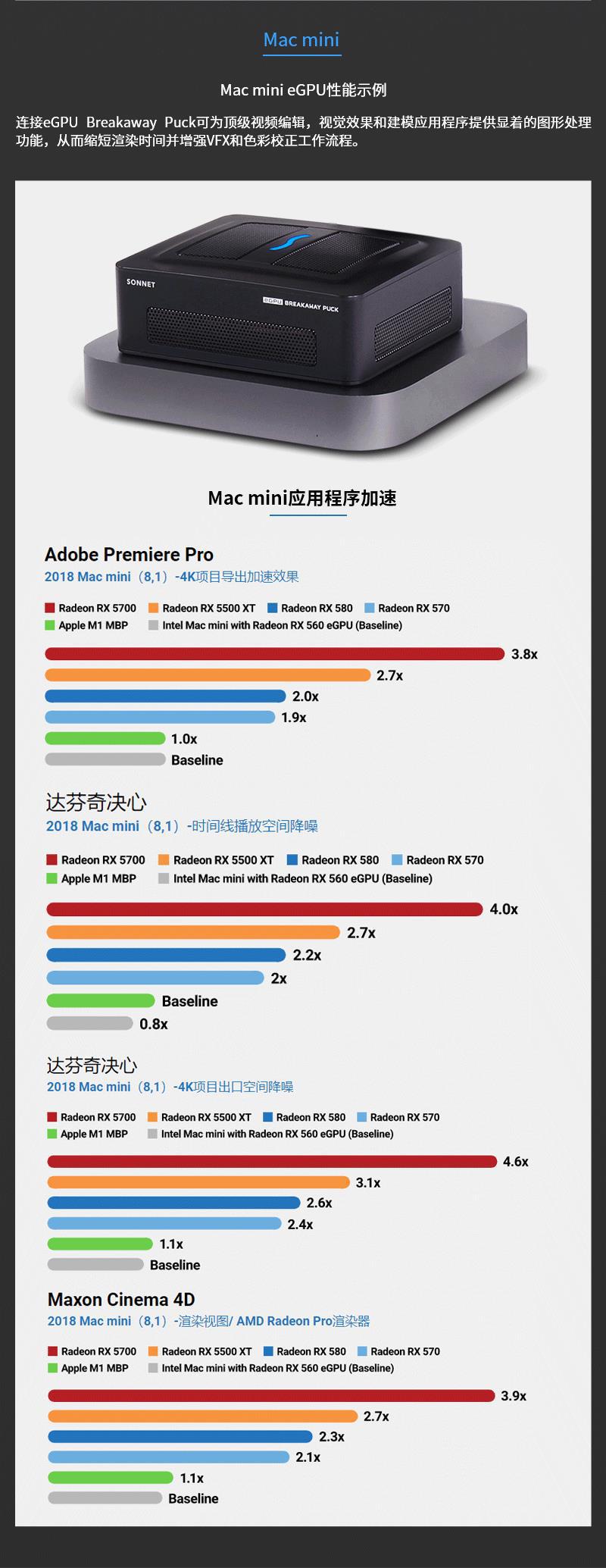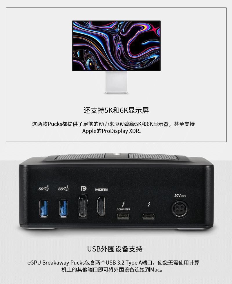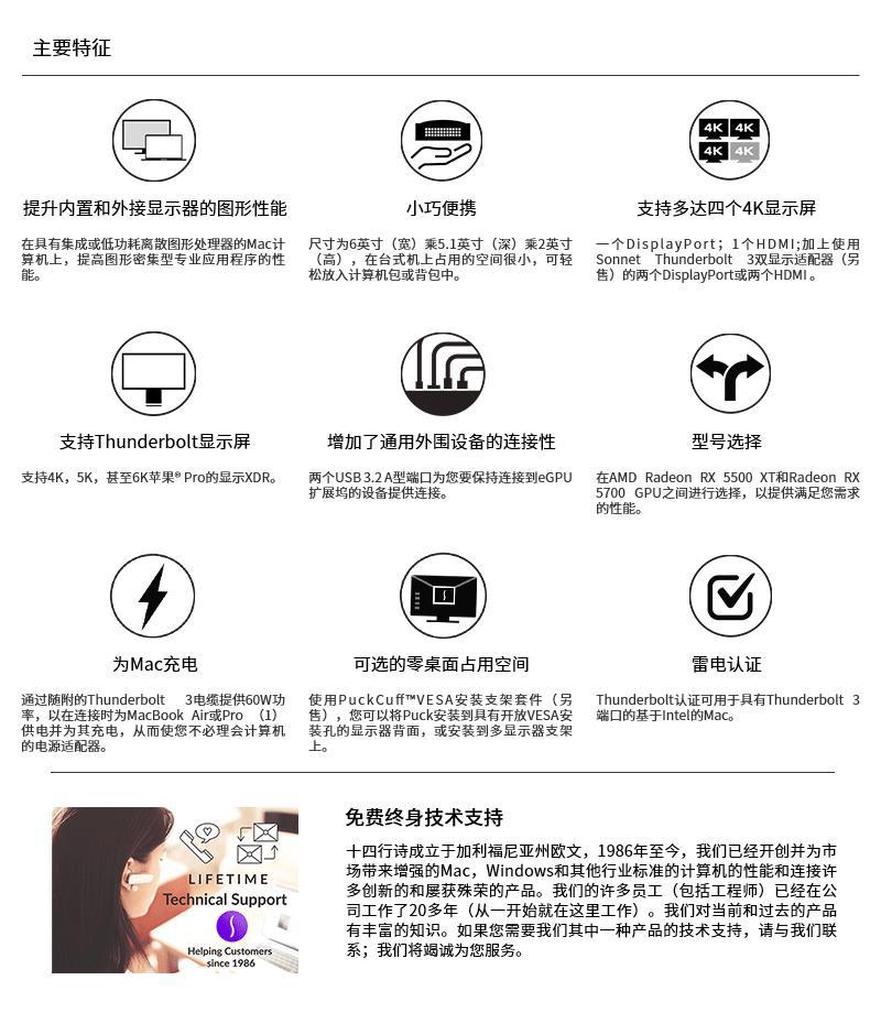 Sonnet eGPU 휴대용 Thunderbolt 3 인터페이스 그래픽 카드 도킹 스테이션 GPU 확장 박스/RX 5700