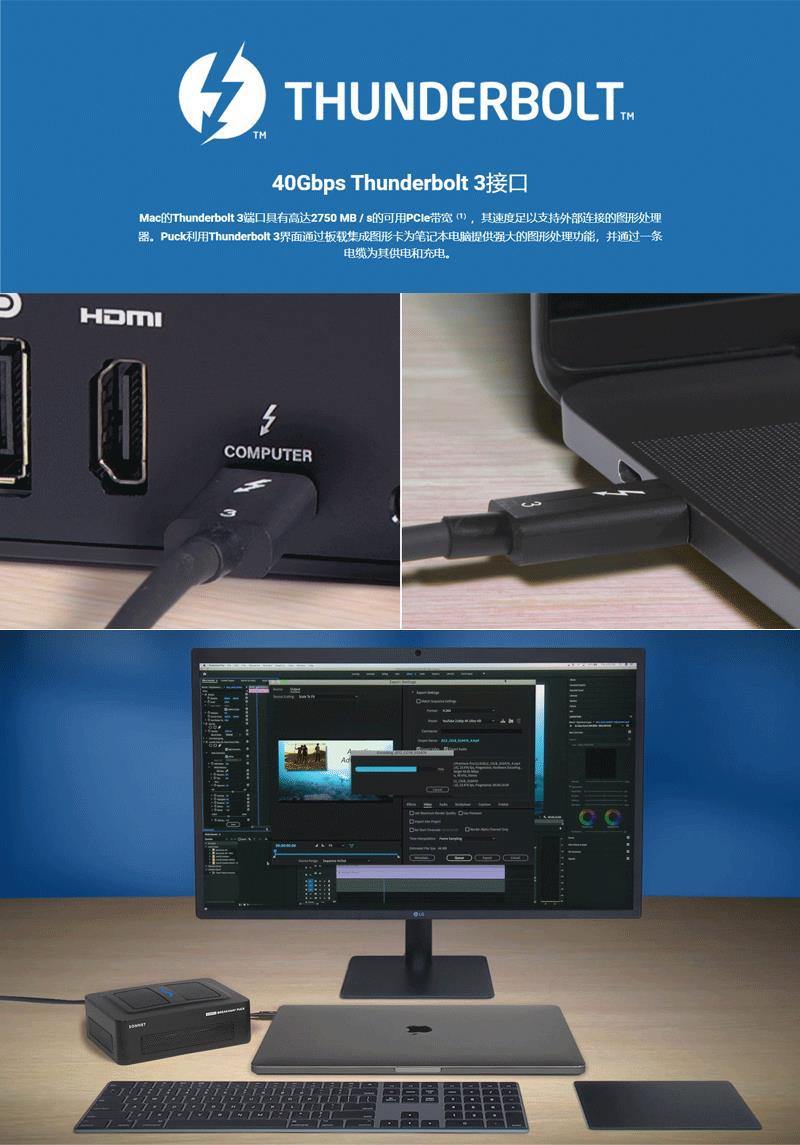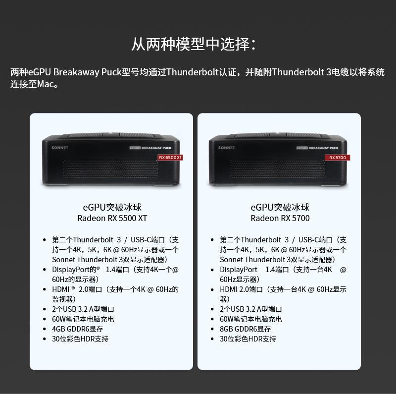 Sonnet eGPU 휴대용 Thunderbolt 3 인터페이스 그래픽 카드 도킹 스테이션 GPU 확장 박스/RX 5700스토어 가기