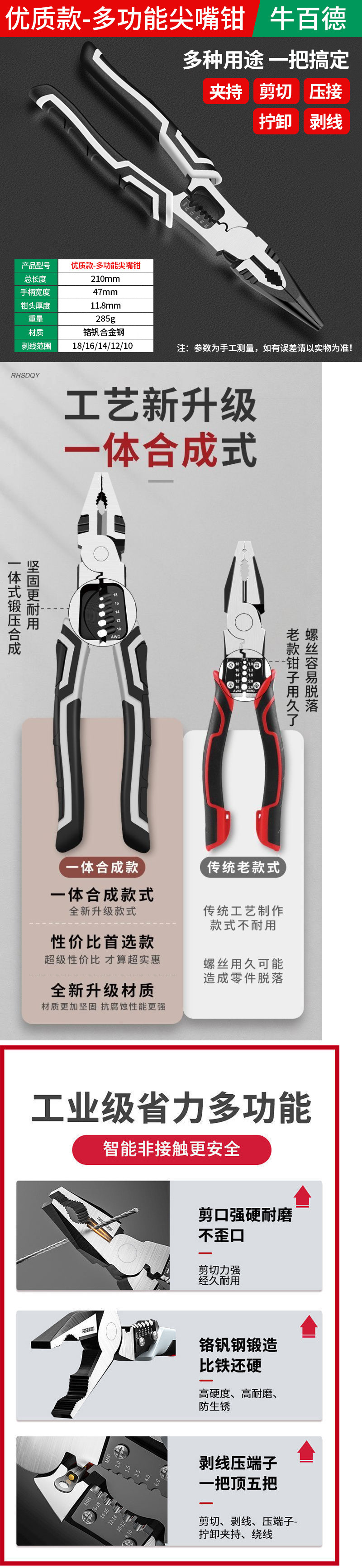 다기능 와이어 펜치, 독일식 대각선 펜치, 산업용 등급 노동 절약형 수공구, 전기 펜치, 바이스, 범용 포인트 펜치