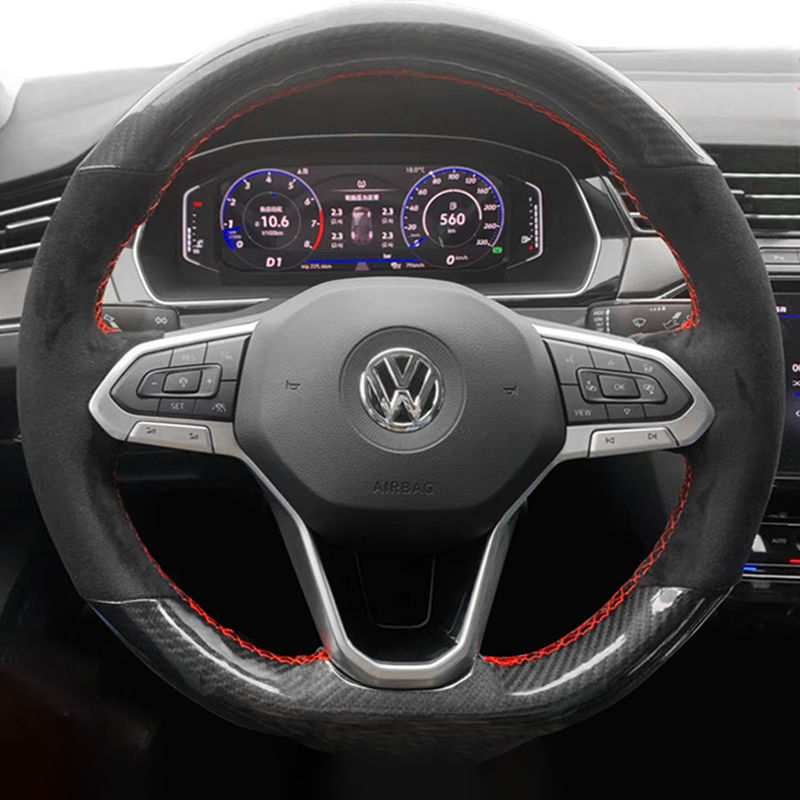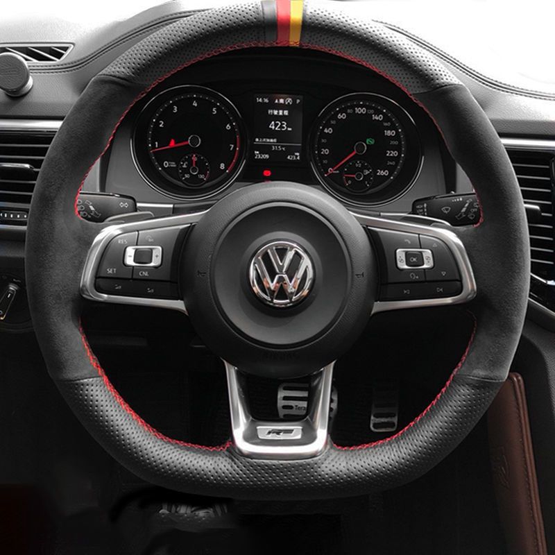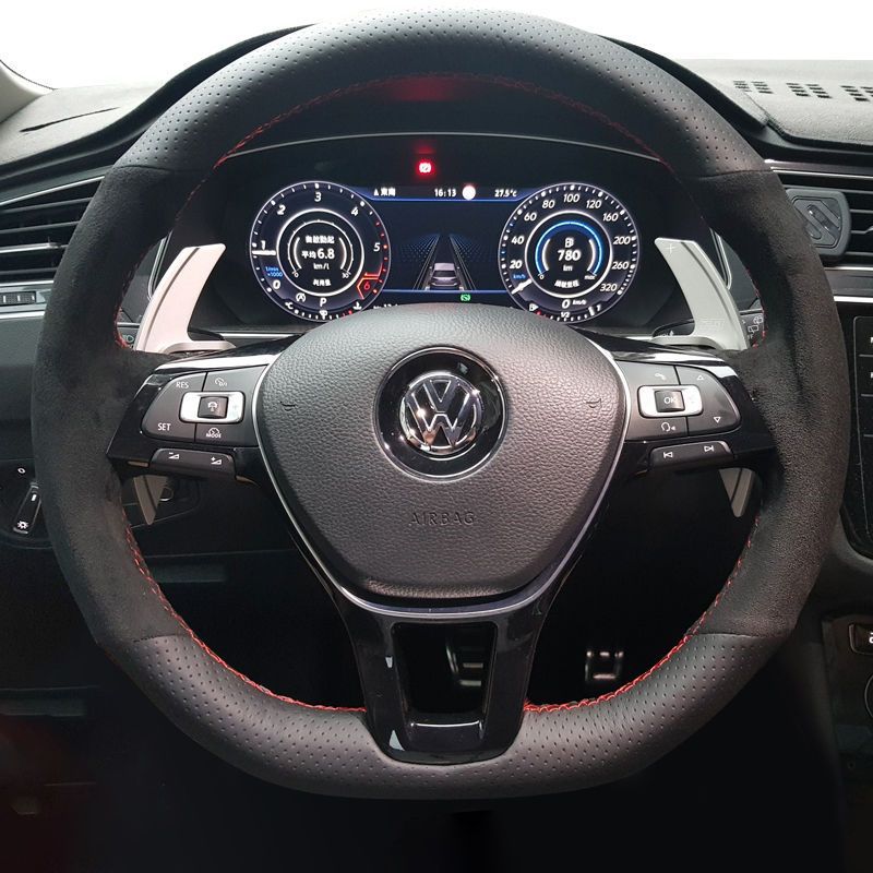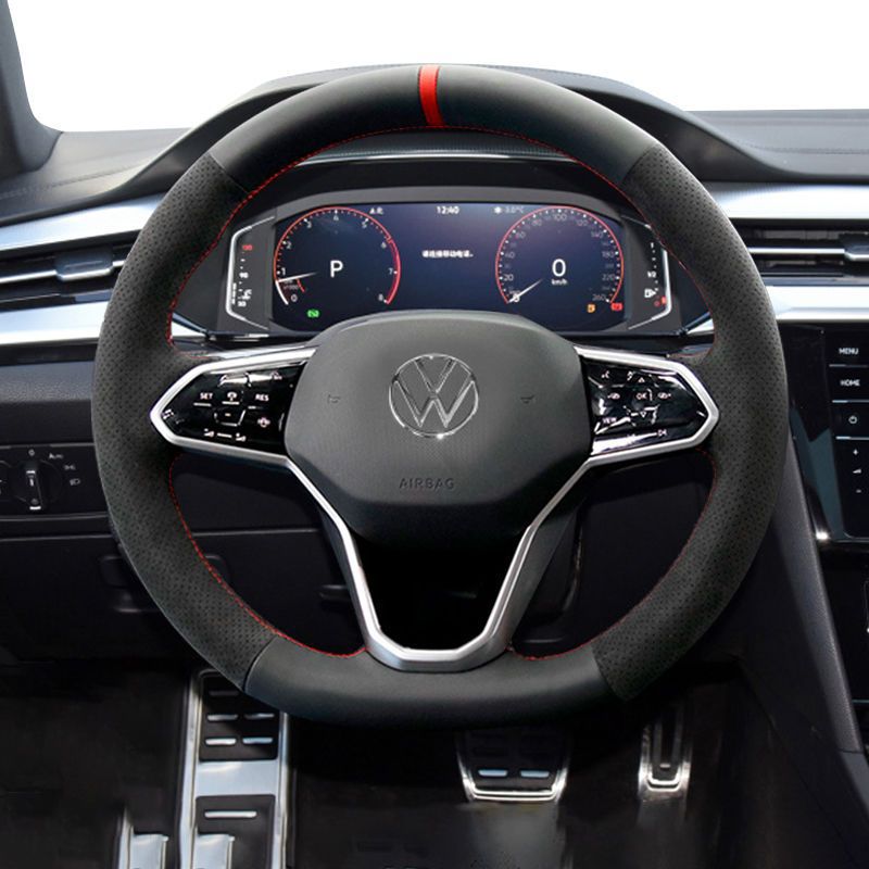 폭스바겐 핸드 스티치 스티어링 휠 스웨이드 Tiguan L Magotan Passat Tanyue Lavida 골프 핸들 커버에 적합스토어 가기