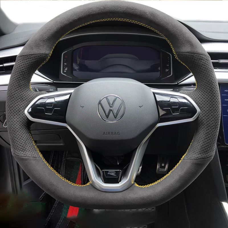 폭스바겐 핸드 스티치 스티어링 휠 스웨이드 Tiguan L Magotan Passat Tanyue Lavida 골프 핸들 커버에 적합