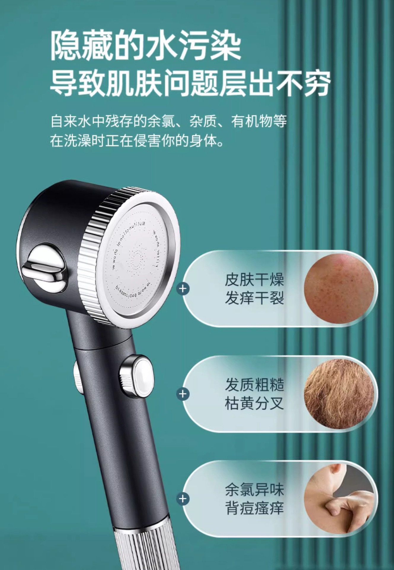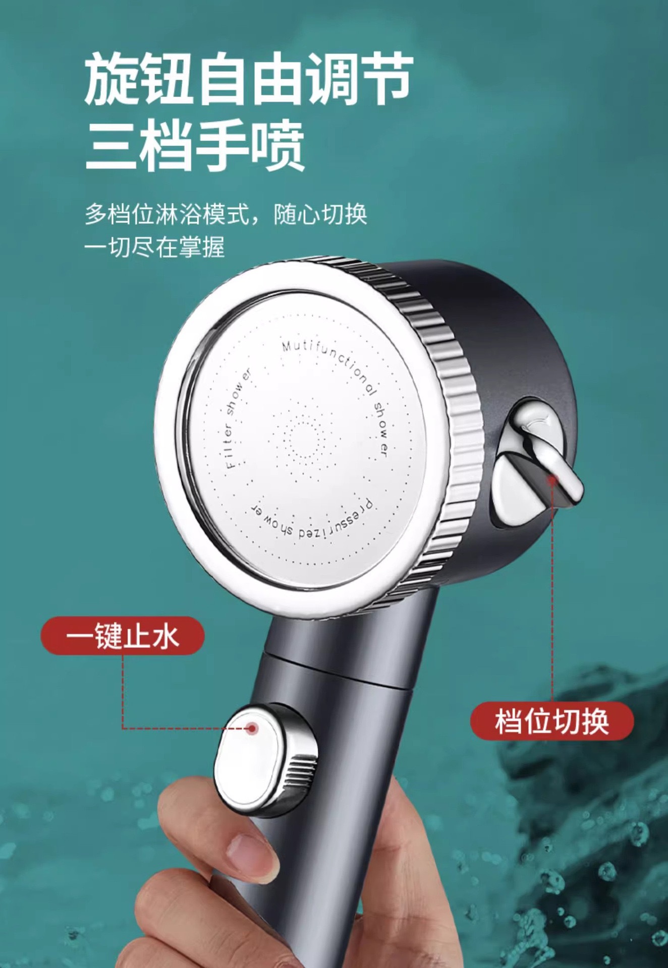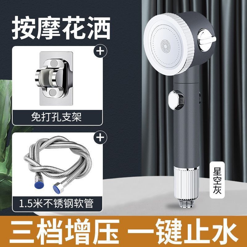 • 마사지 샤워헤드(회색) + 스테인리스 스틸 파이프 1.5m개
