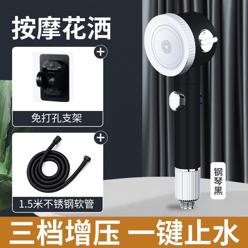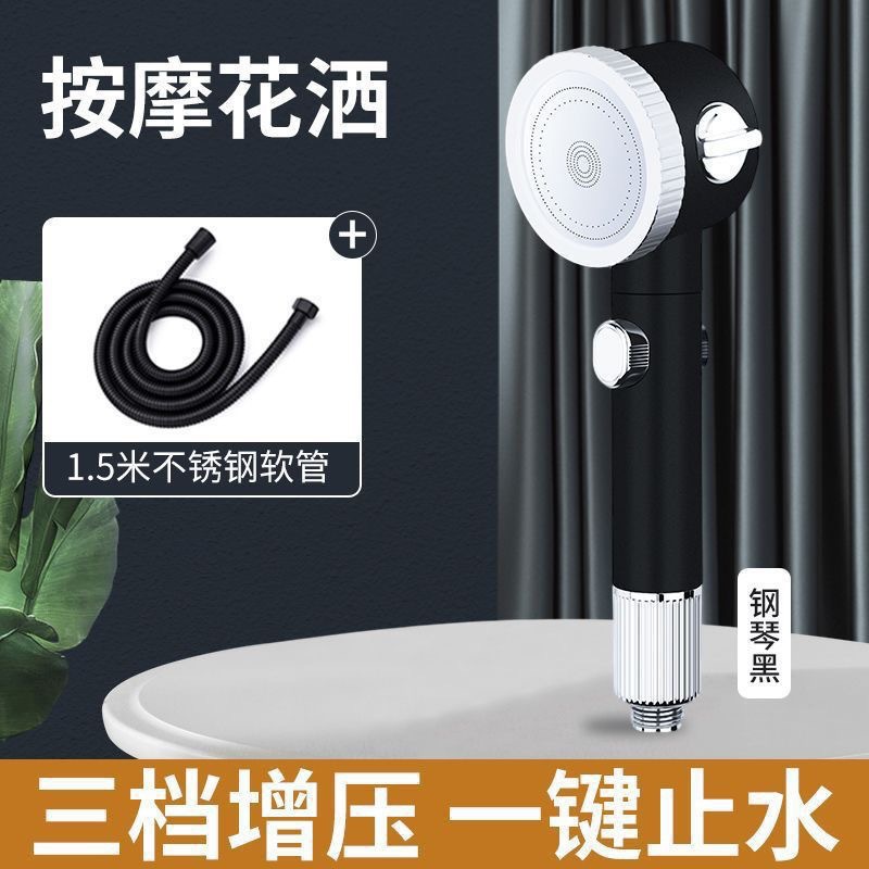 • 마사지 샤워헤드(블랙) + 스테인리스 스틸 파이프 1.5m개