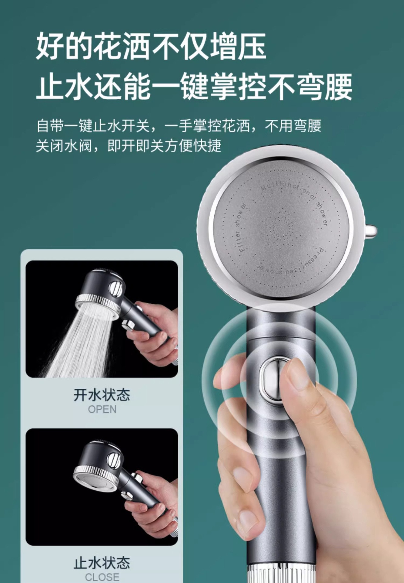 터보차저 샤워헤드, 초강력, 초압, 대용량, 욕실 샤워헤드, 레인 샤워헤드 세트