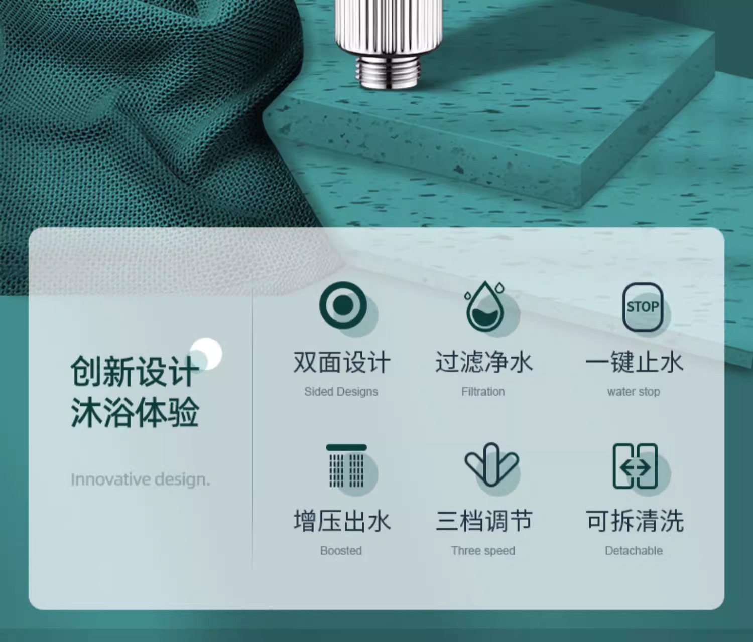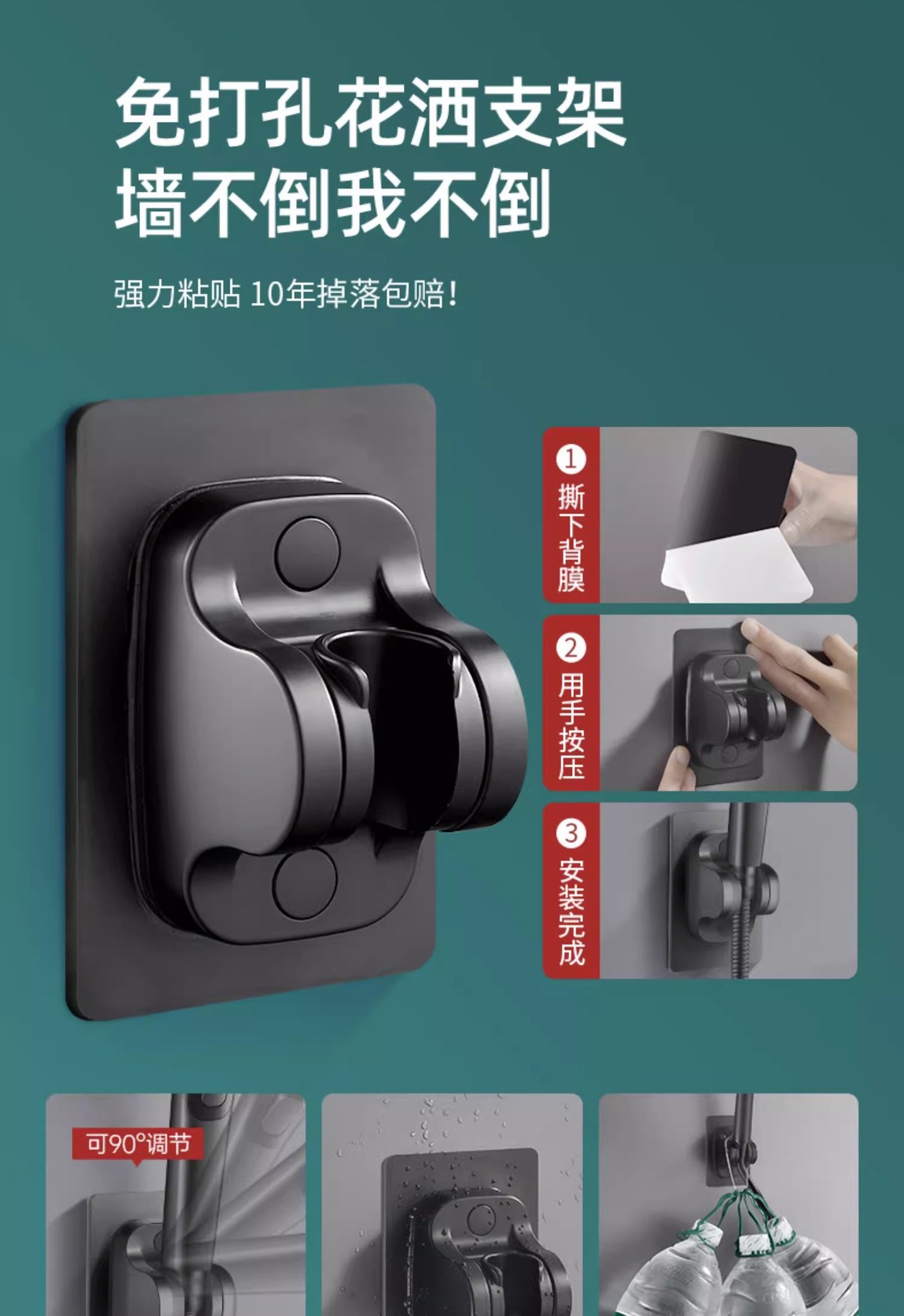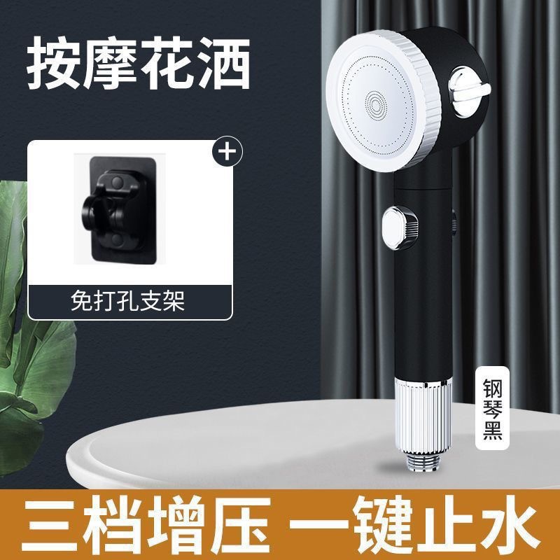 • 마사지 샤워헤드(블랙) + 펀치프리 베이스