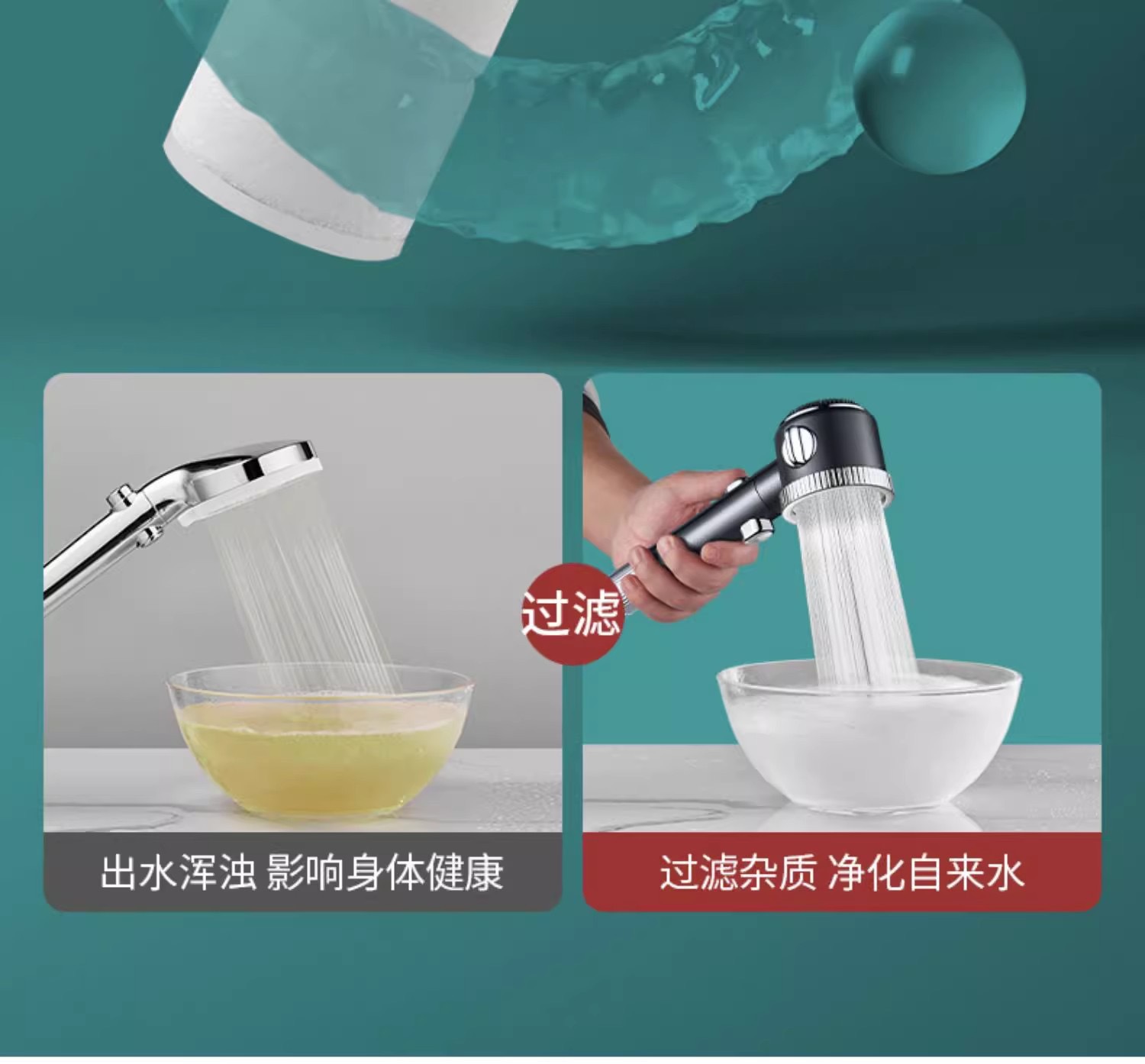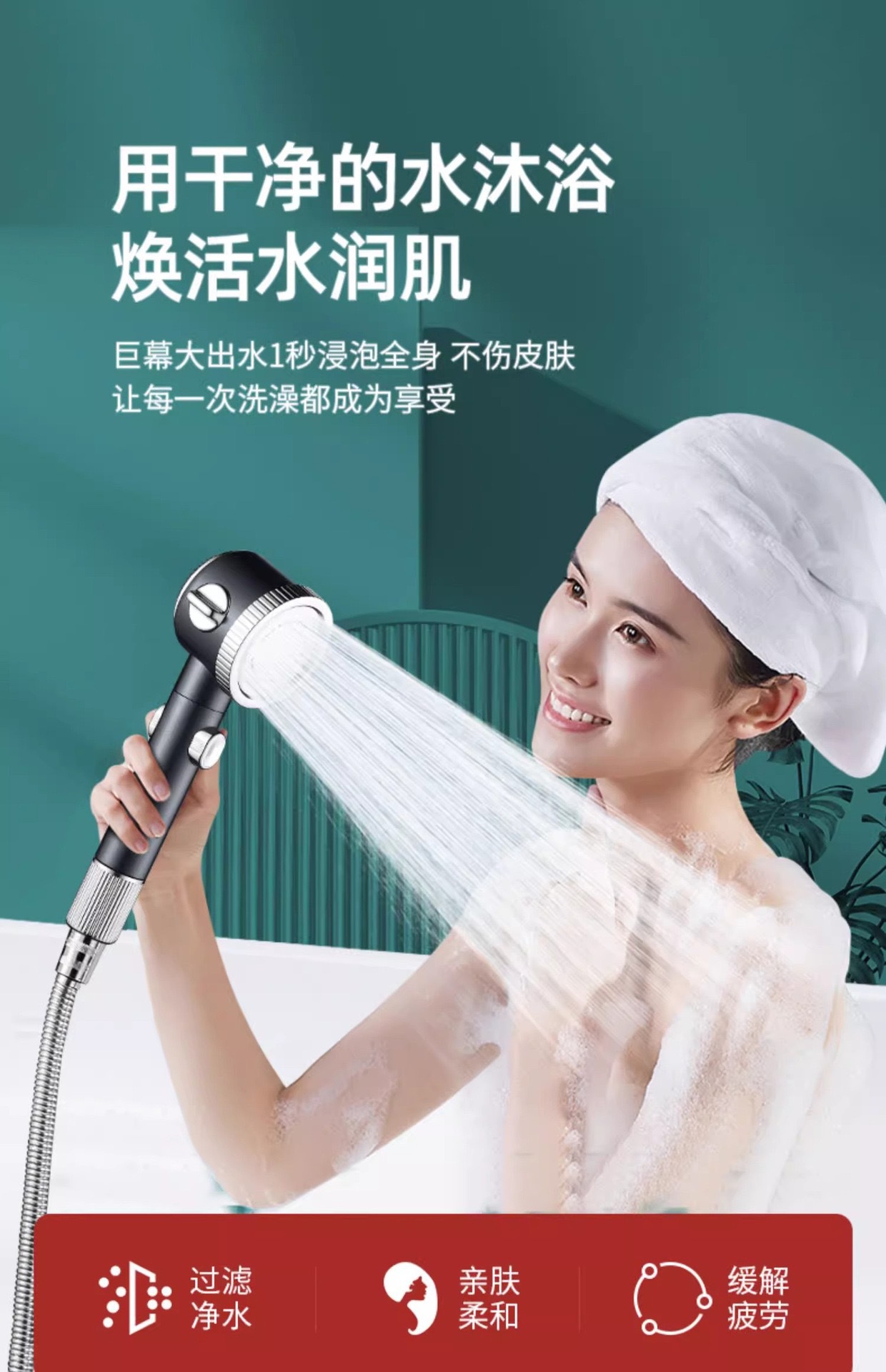 • 마사지 샤워헤드(보라색) + 스테인리스 스틸 튜브 1.5m개