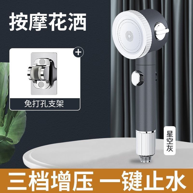• 마사지 샤워헤드(회색) + 1.5m 스테인리스 스틸 파이프 + 펀치 프리 베이스