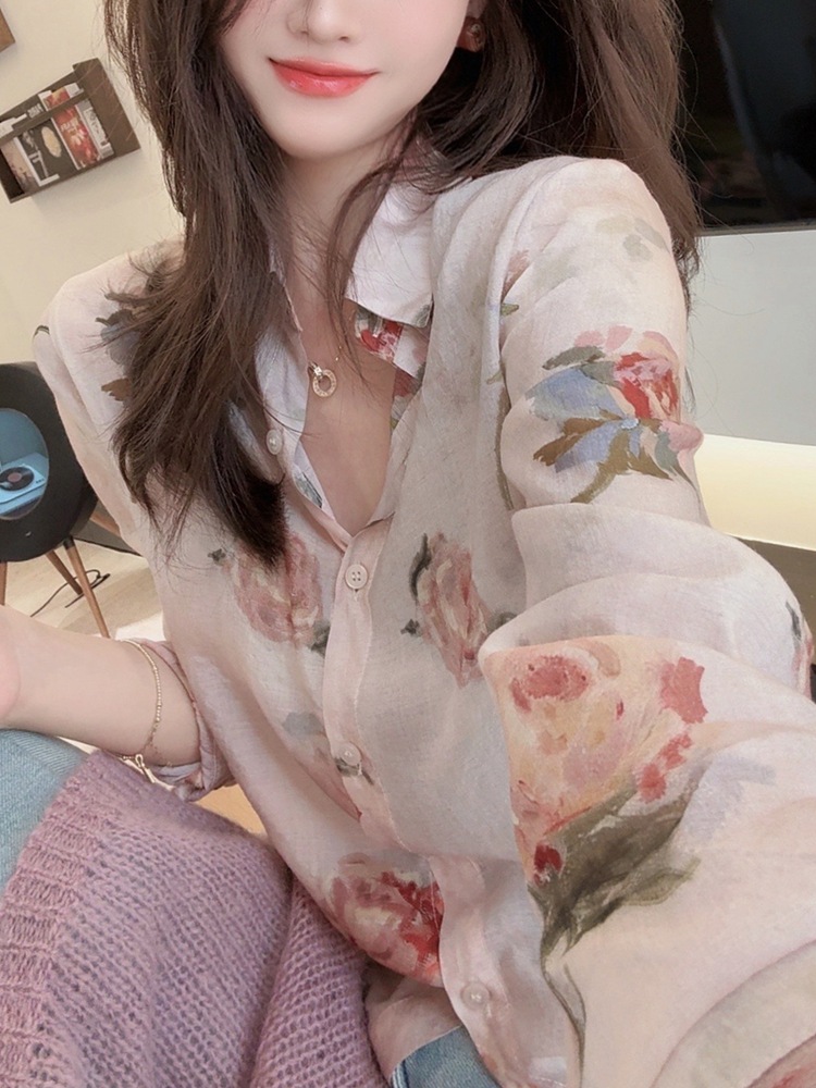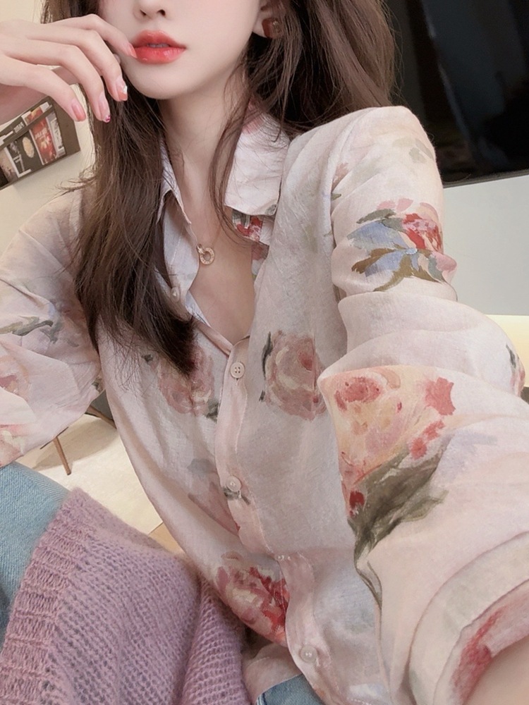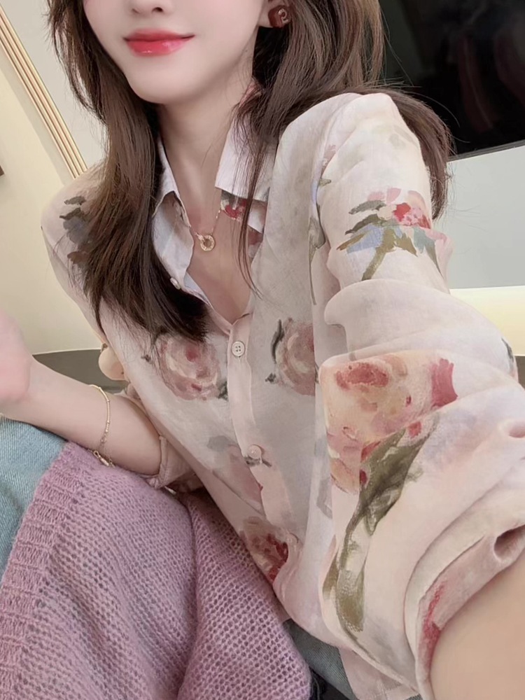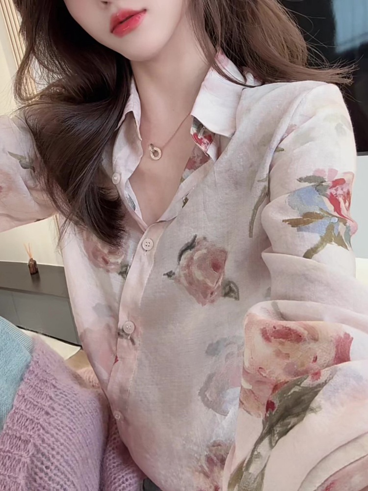 여성을위한 프랑스 스타일 꽃 무늬 쉬폰 셔츠 2025 여름 새로운 디자인 틈새 셔츠 독특하고 아름다운 탑스토어 가기