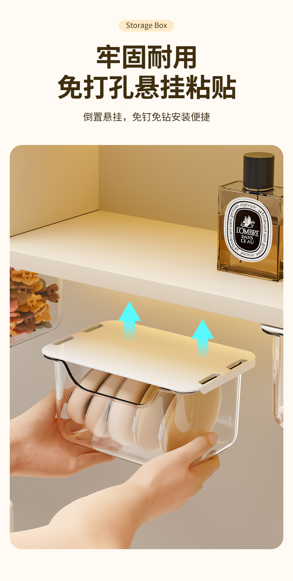 탁상서랍 아래에 구멍을 뚫을 필요 없음, 보이지 않는 책상 수납함, 걸이식 서랍형 메모 데이터 케이블 충전 헤드 수납함