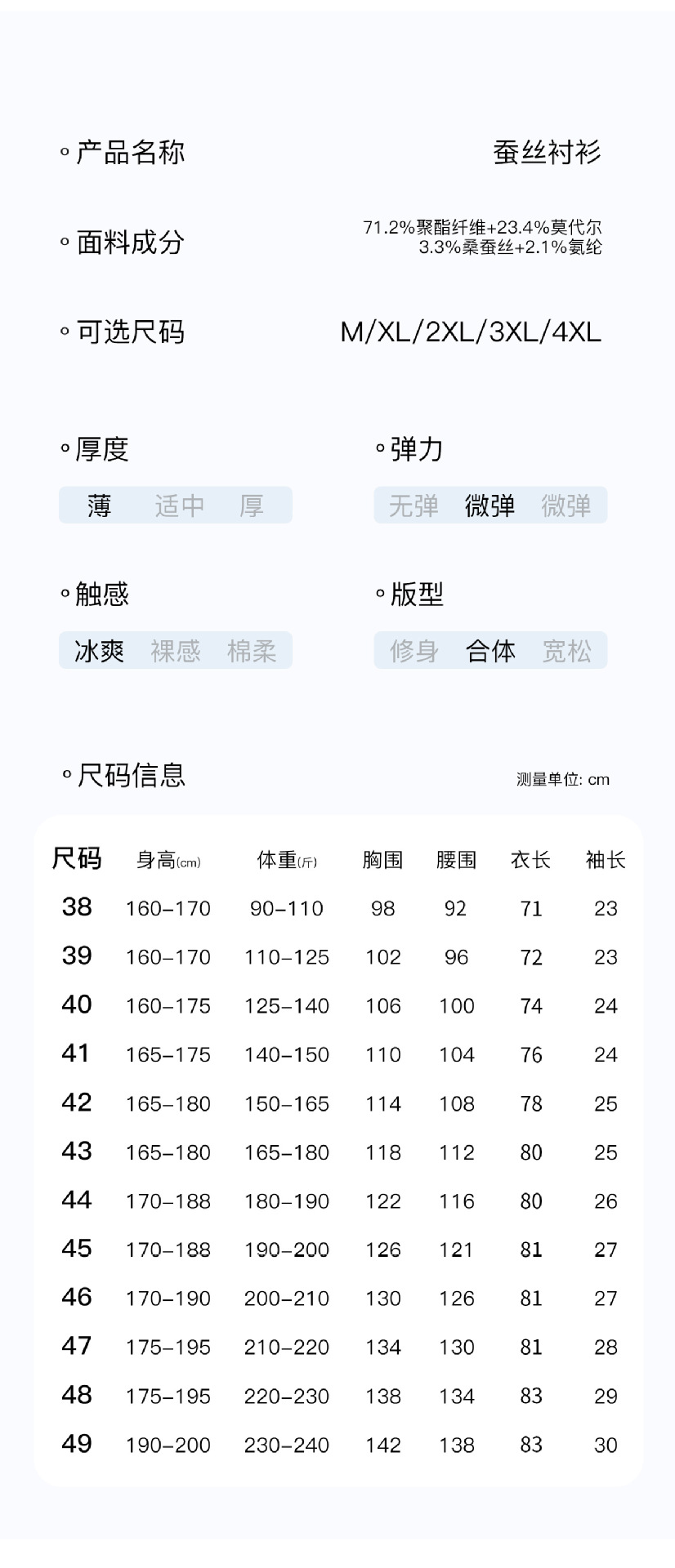 • 46/7XL(대형 사이즈는 3위안 추가) 100-105kg