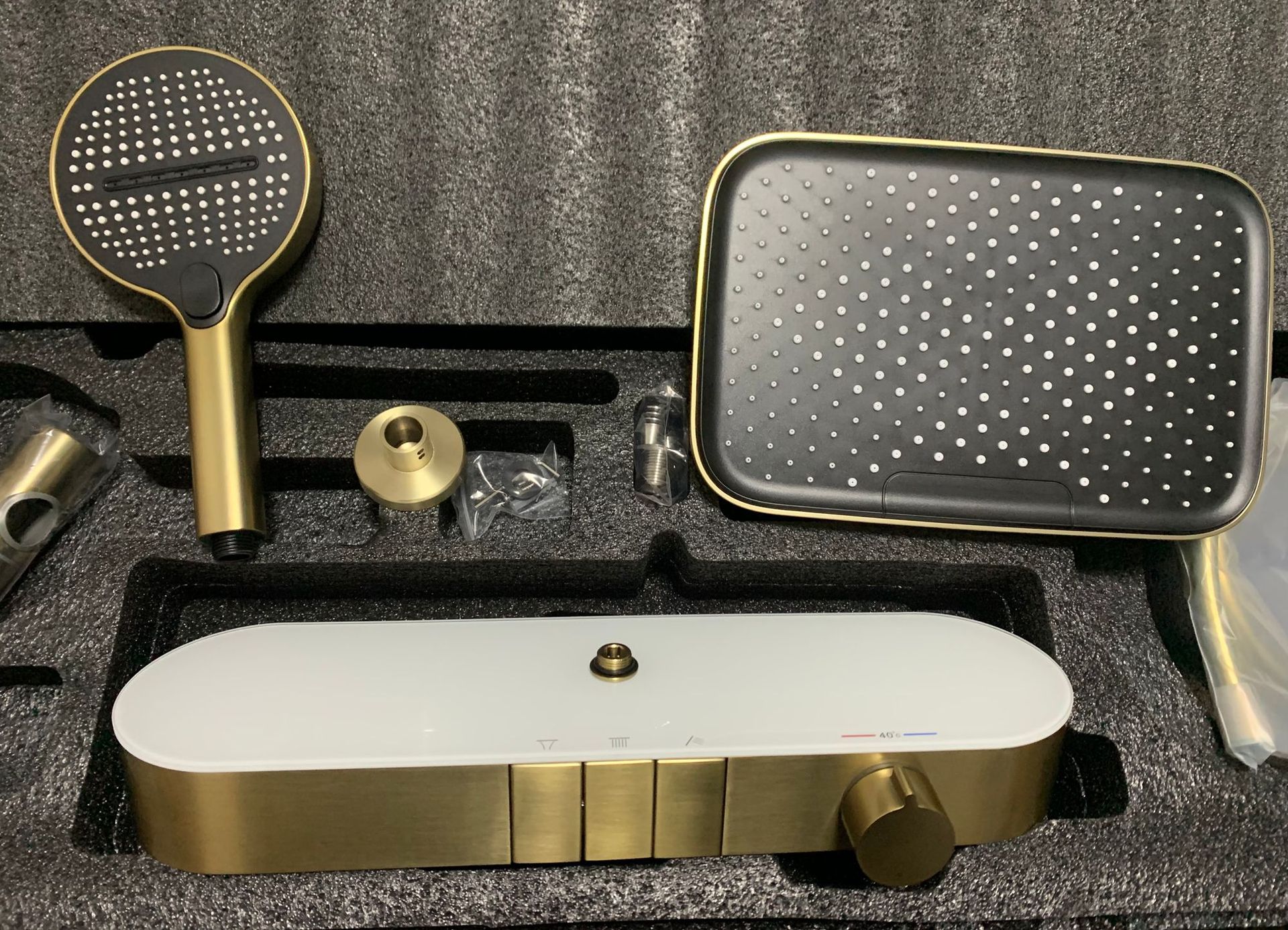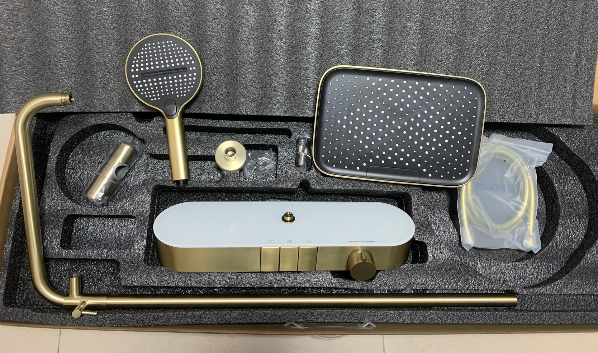 • 사각 튜브 브러시드 골드 핫 및 콜드 스타일