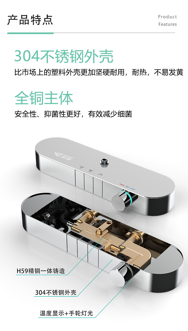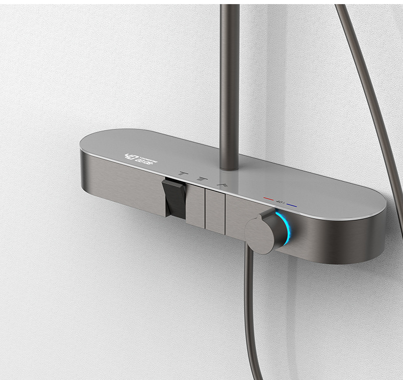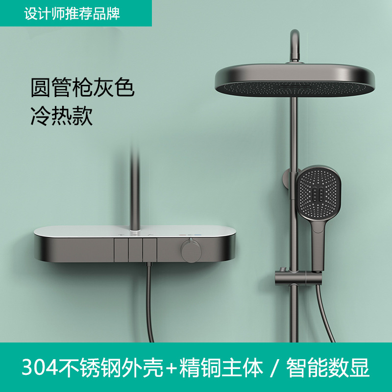 하이 엔드 항온 냉온수 샤워 헤드 세트 가정용 전체 구리 욕실 레인 샤워 헤드 회색 욕실 부스터스토어 가기