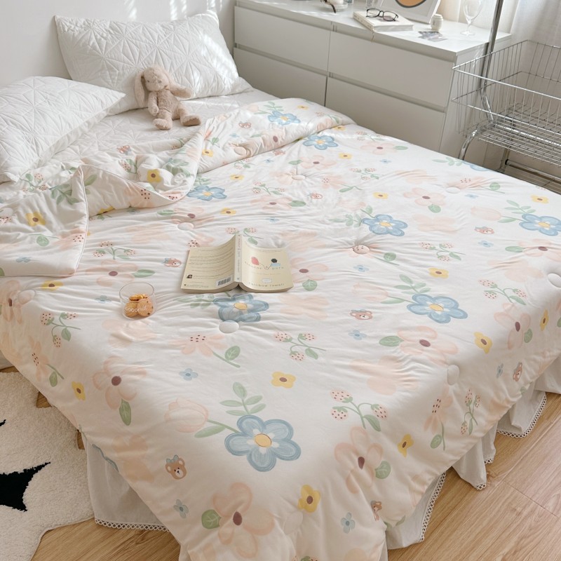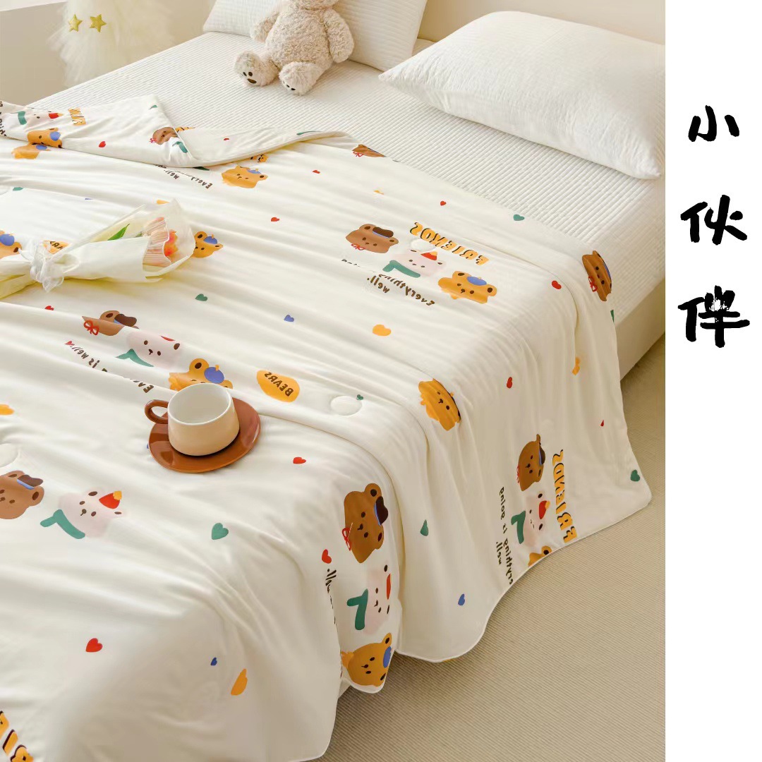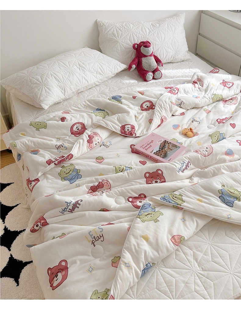 클래스 A 작은 신선한 인쇄 니트 면 여름 이불 콩 여름 시원한 이불 빨 수있는 어린이 에어컨 이불 얇은 이불