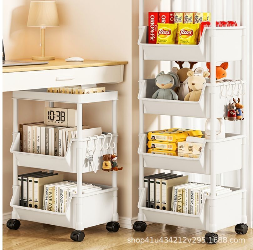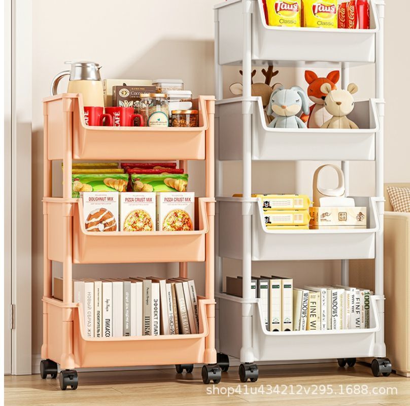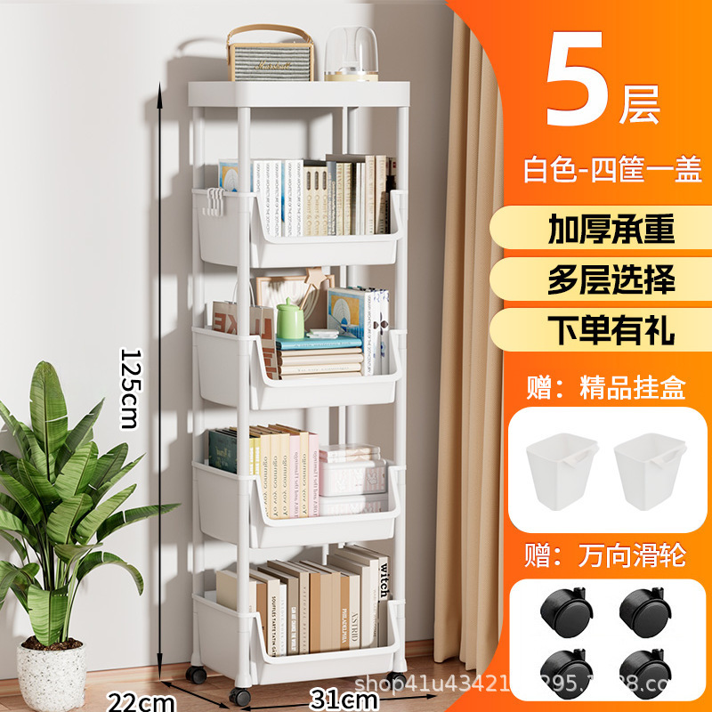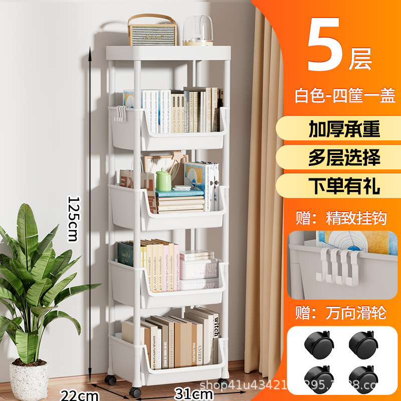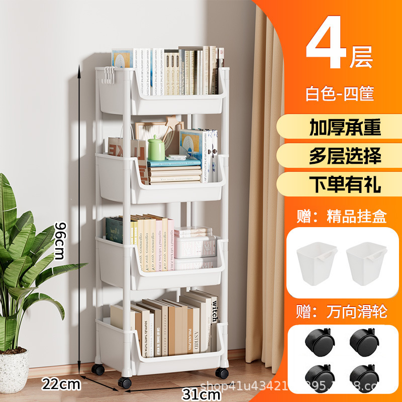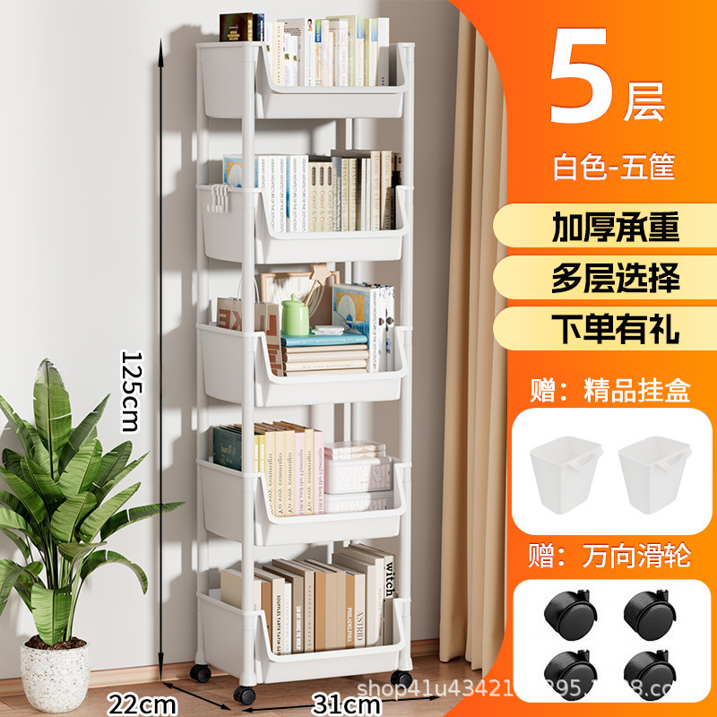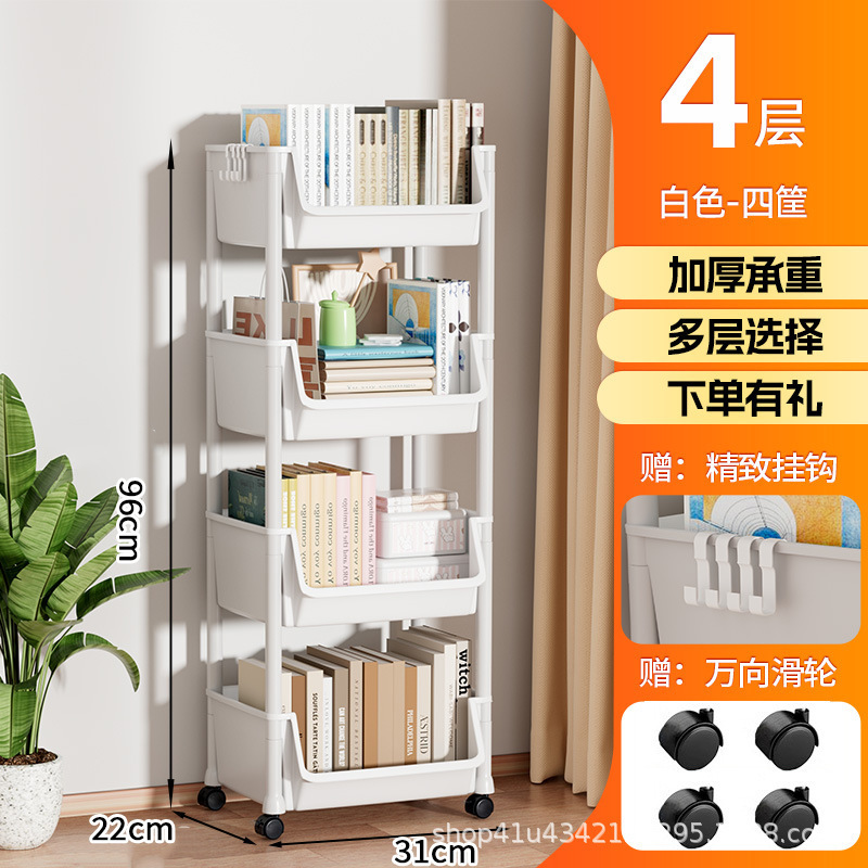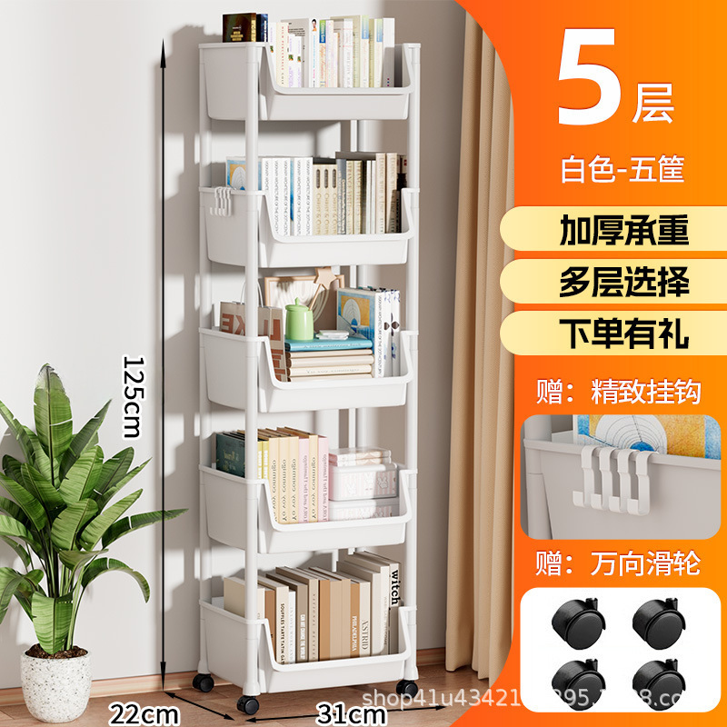 플라스틱 수납 선반 이동식 바닥에서 천장까지 다층 수납 책장 거실 홈 간단한 수납 선반 어린이 유모차