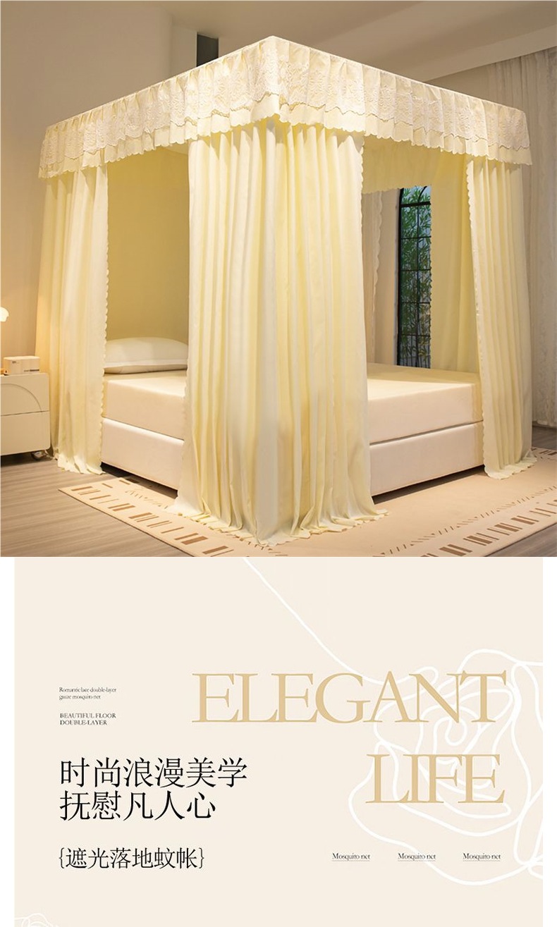 공주 스타일 침대 커튼 가정용 침실 방풍 밀폐형 차광 두꺼운 침대 커튼 3 도어 모기장 침구스토어 가기