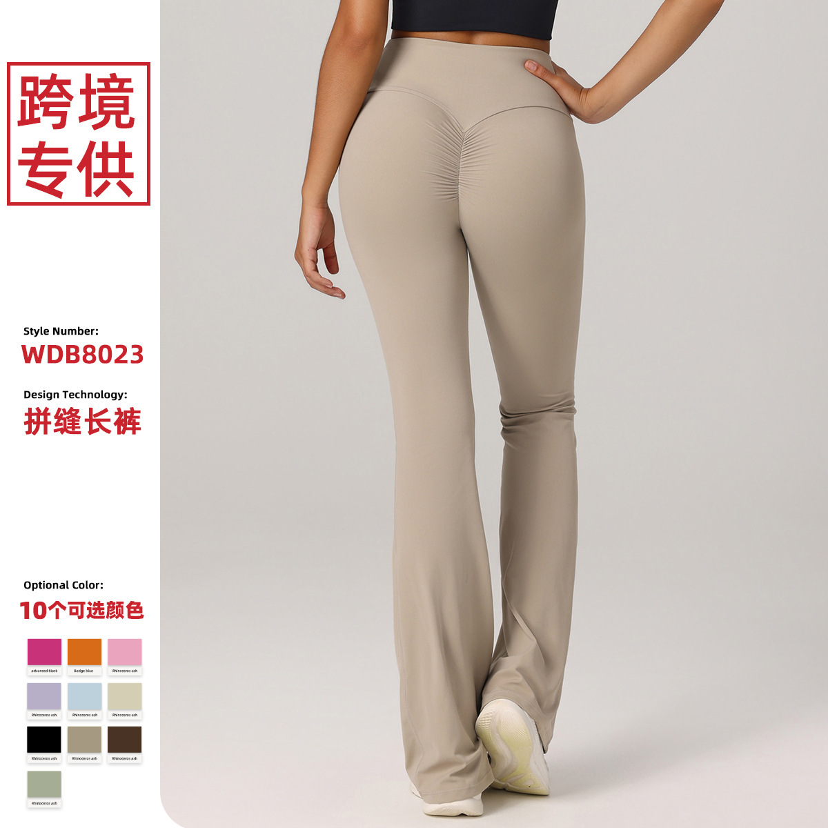 유럽과 미국의 국경 간 아마존은 여성용 하이 웨이스트 엉덩이 리프팅 피트니스 스포츠 바지 마이크로 플레어 요가 바지 러닝 필라테스를 전문으로합니다.