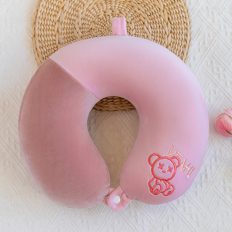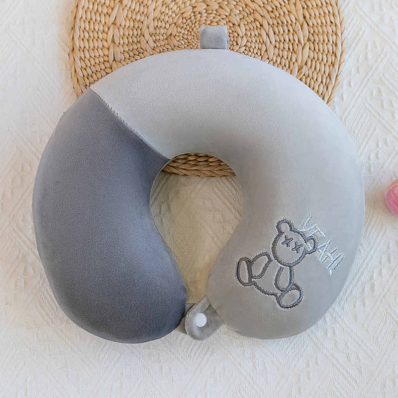 귀여운 만화 동물 목 베개 비행기 여행 베개 보호 경추 목 베개 메모리 폼 U 자형 베개