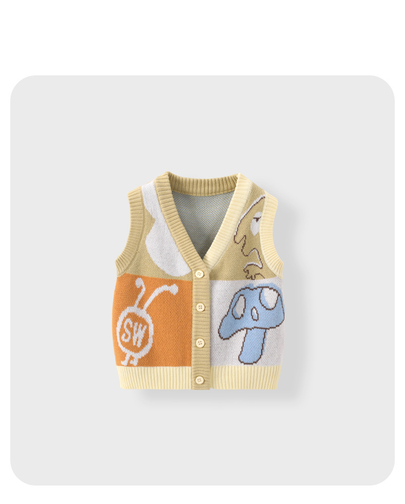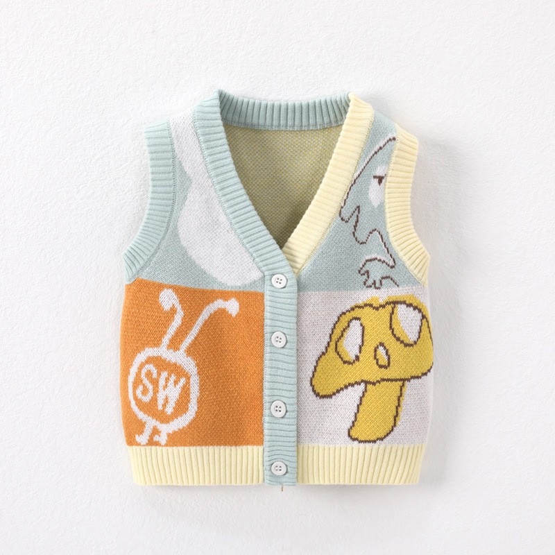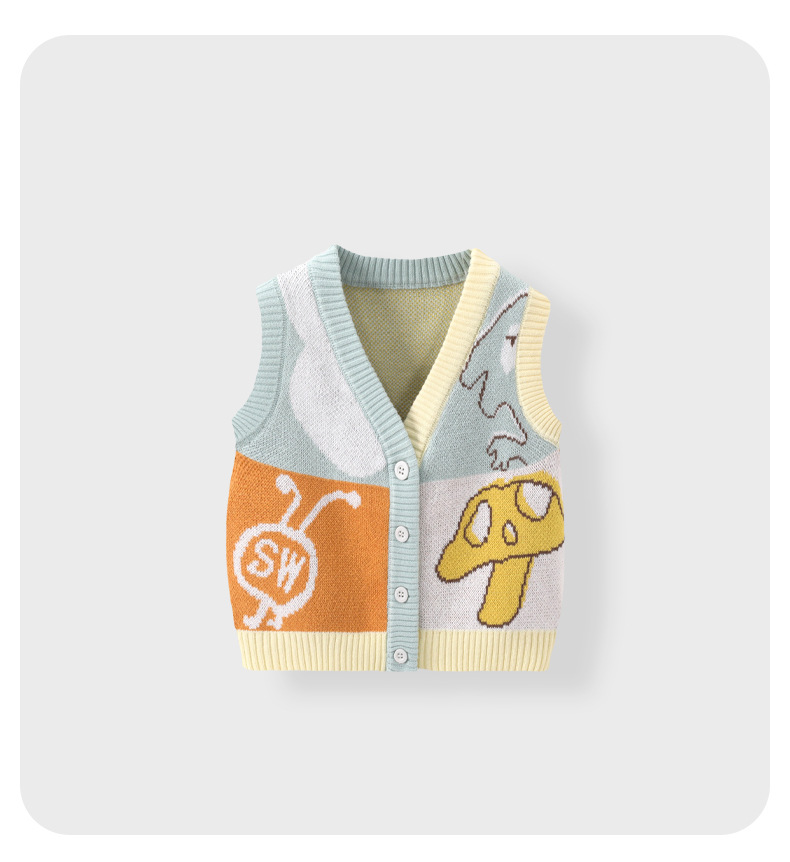 봄과 가을 신상 남아용 한국 스타일 배색 아동 조끼 편안한 니트 여아용 스웨터 조끼 유아용스토어 가기
