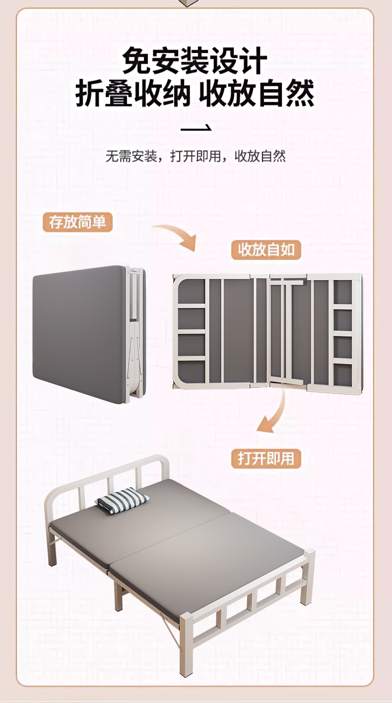 싱글 침대 가정용 접이식 침대 임대 작은 침대 침실 추가 침대 1.2m 성인용 간이 침대 1.5m 더블 침대스토어 가기