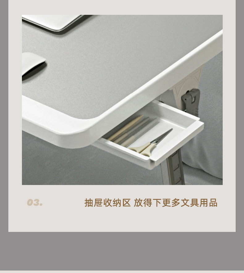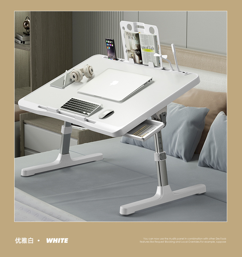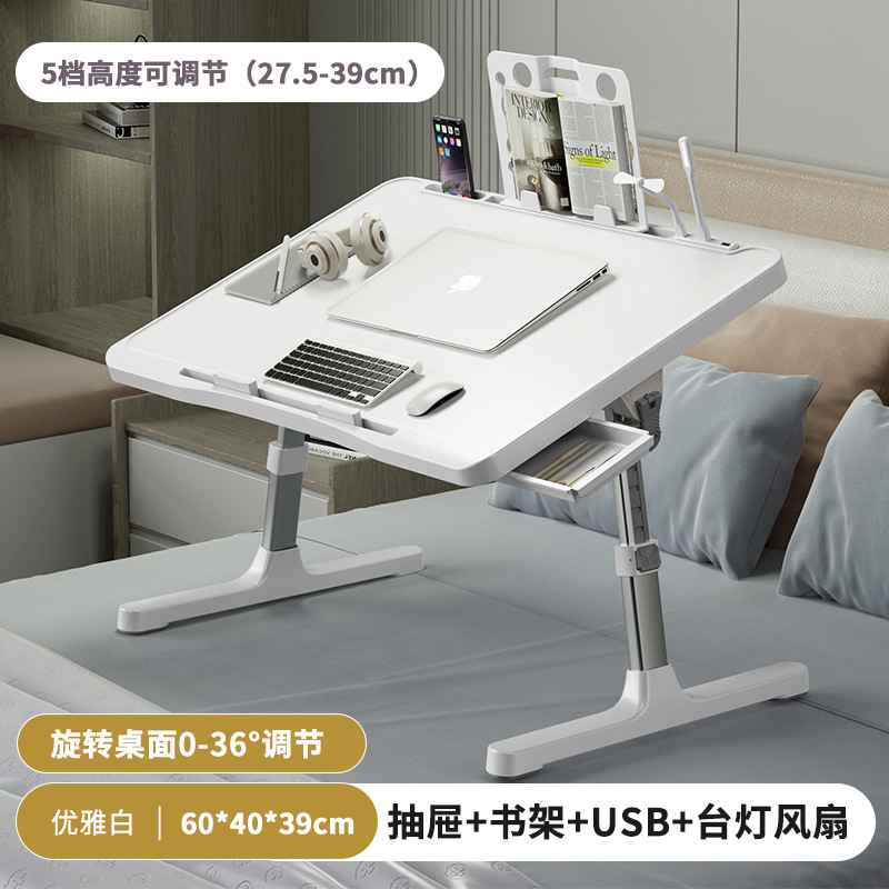 • 우아한 화이트 + 서랍 + 책장 + USB(소형 램프 및 선풍기 포함) + 미끄럼 방지 트레이