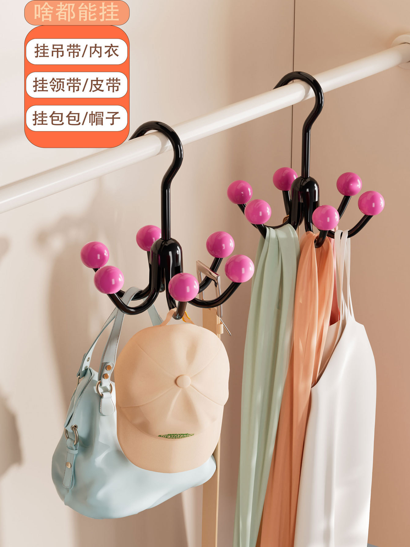 문 뒤에 있는 옷장에 걸 수 있는 특허 도파민 모자 보관함, 야구 모자, 서스펜더, 수건, 가방 보관함