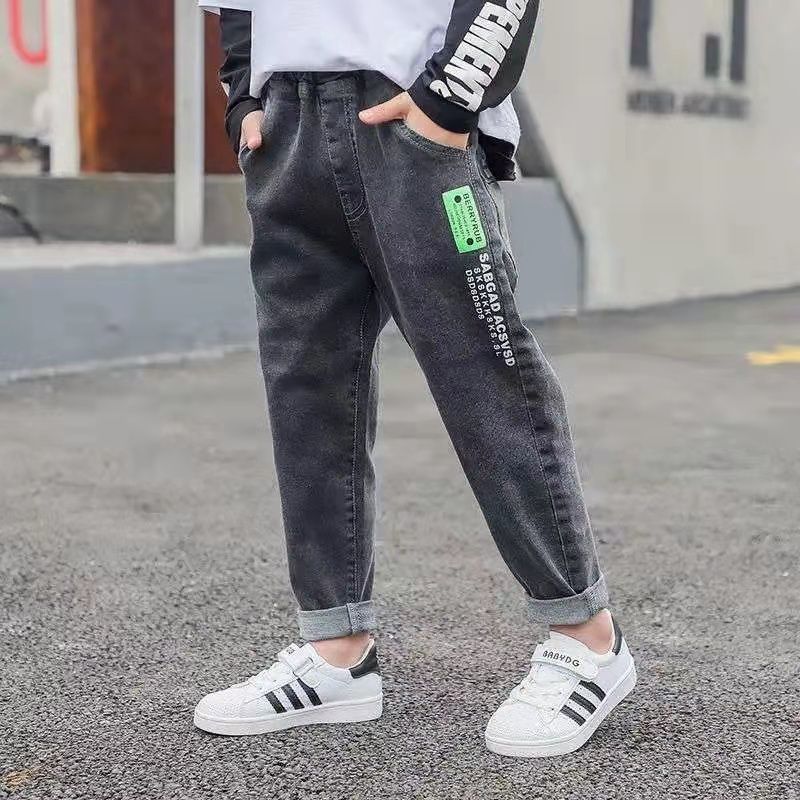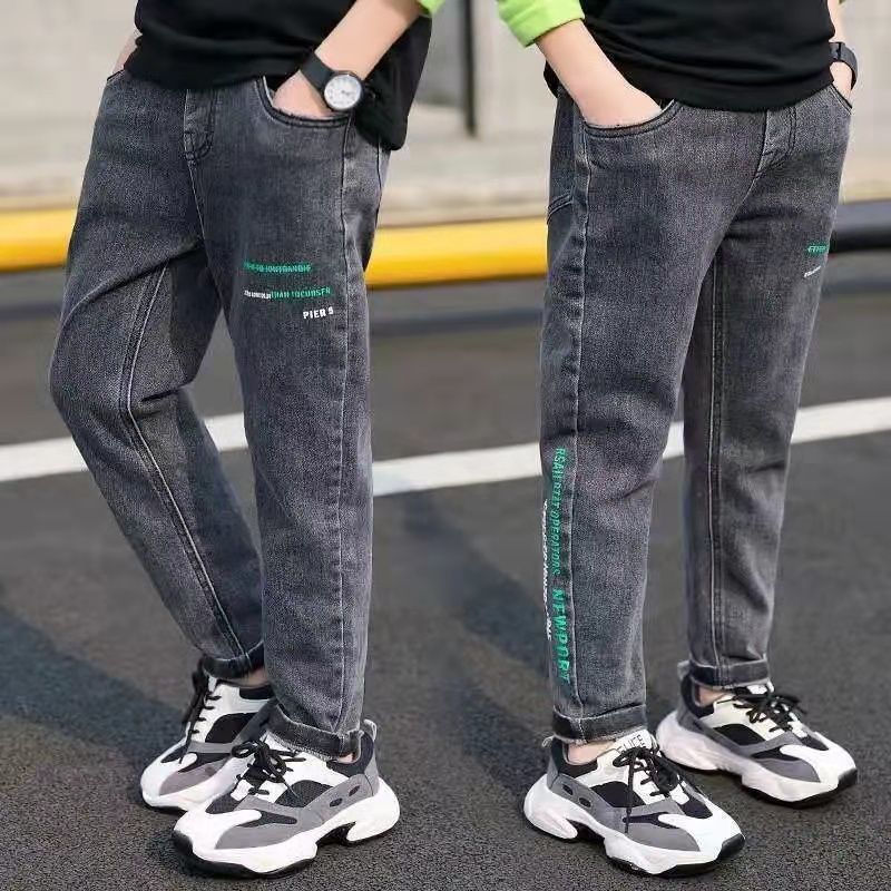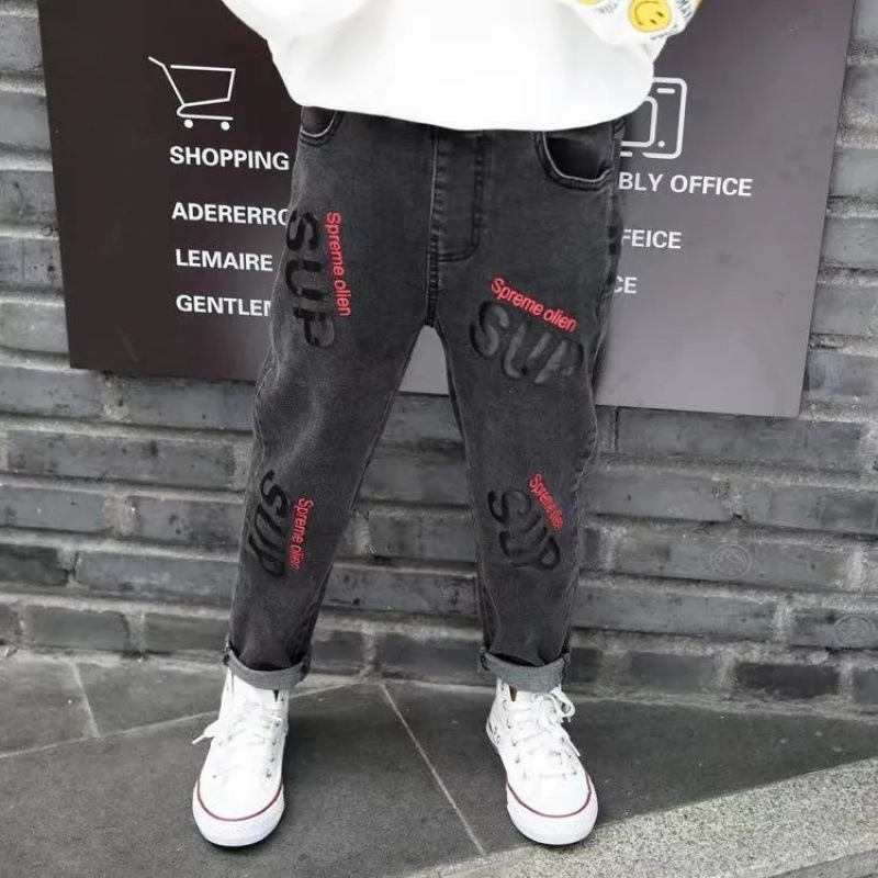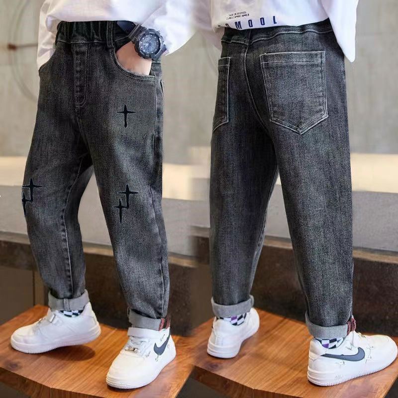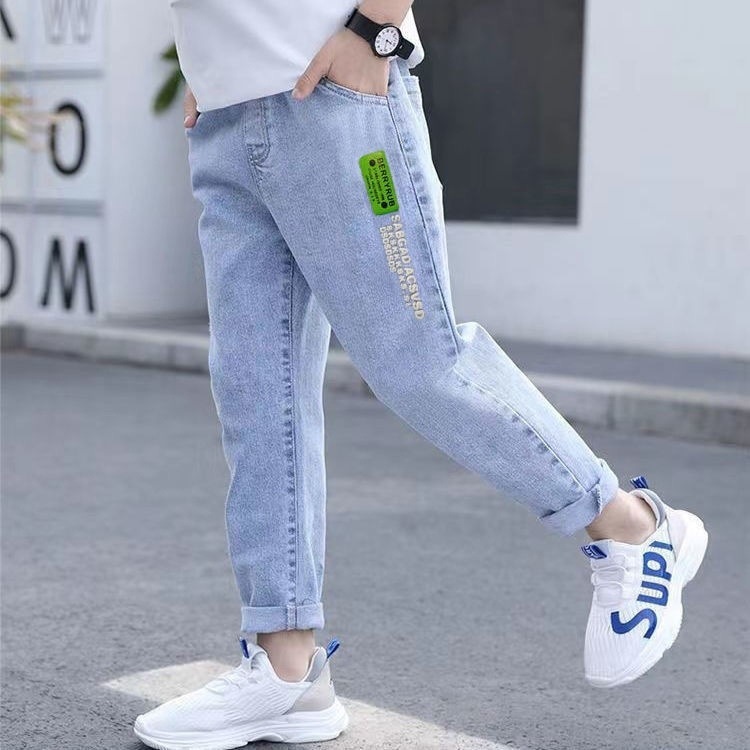 아동복 소년 바지 봄, 가을 2025 새로운 밝은 색상 아동용 스트레치 청바지 얇은 중대형 아동용 스트리트 봄 의류스토어 가기
