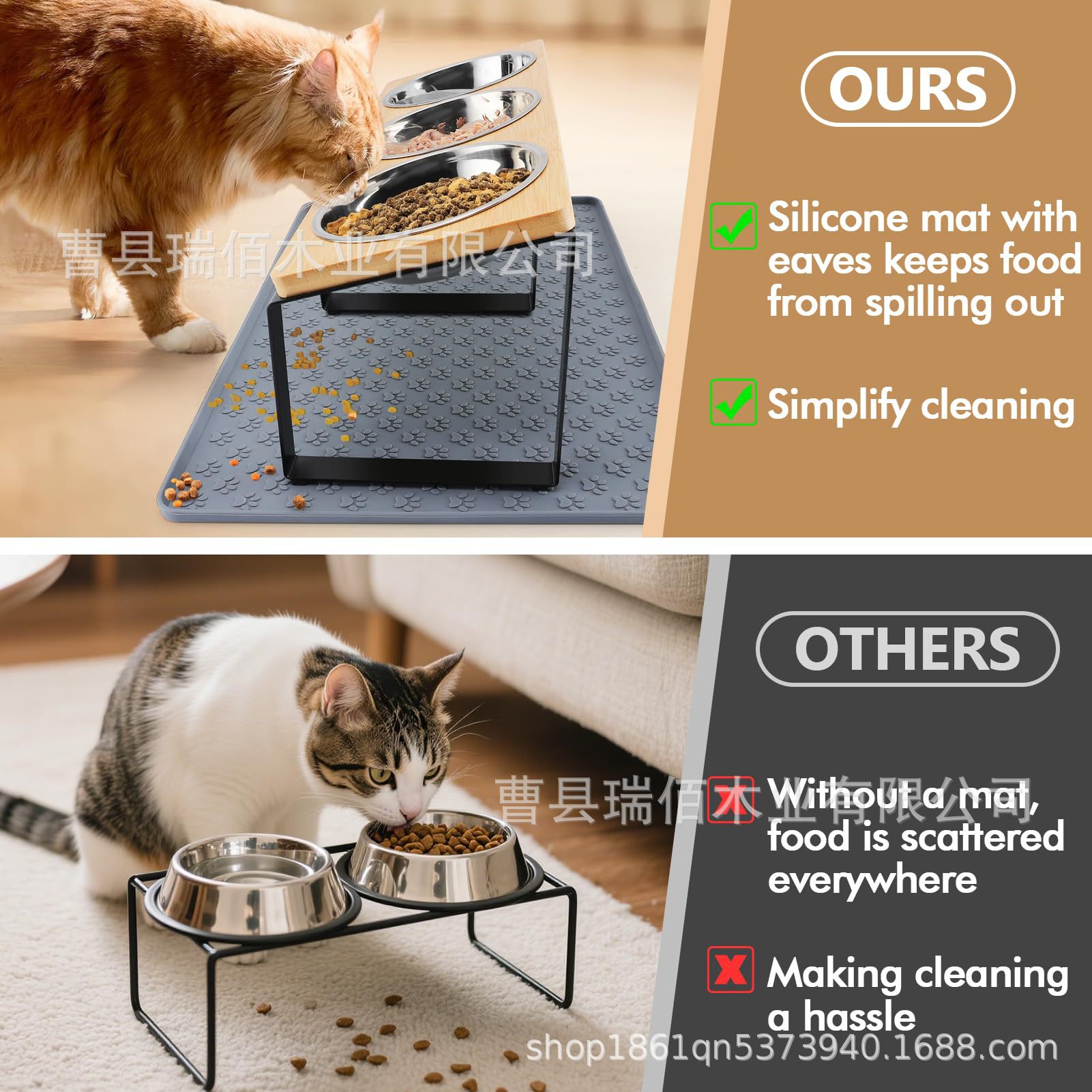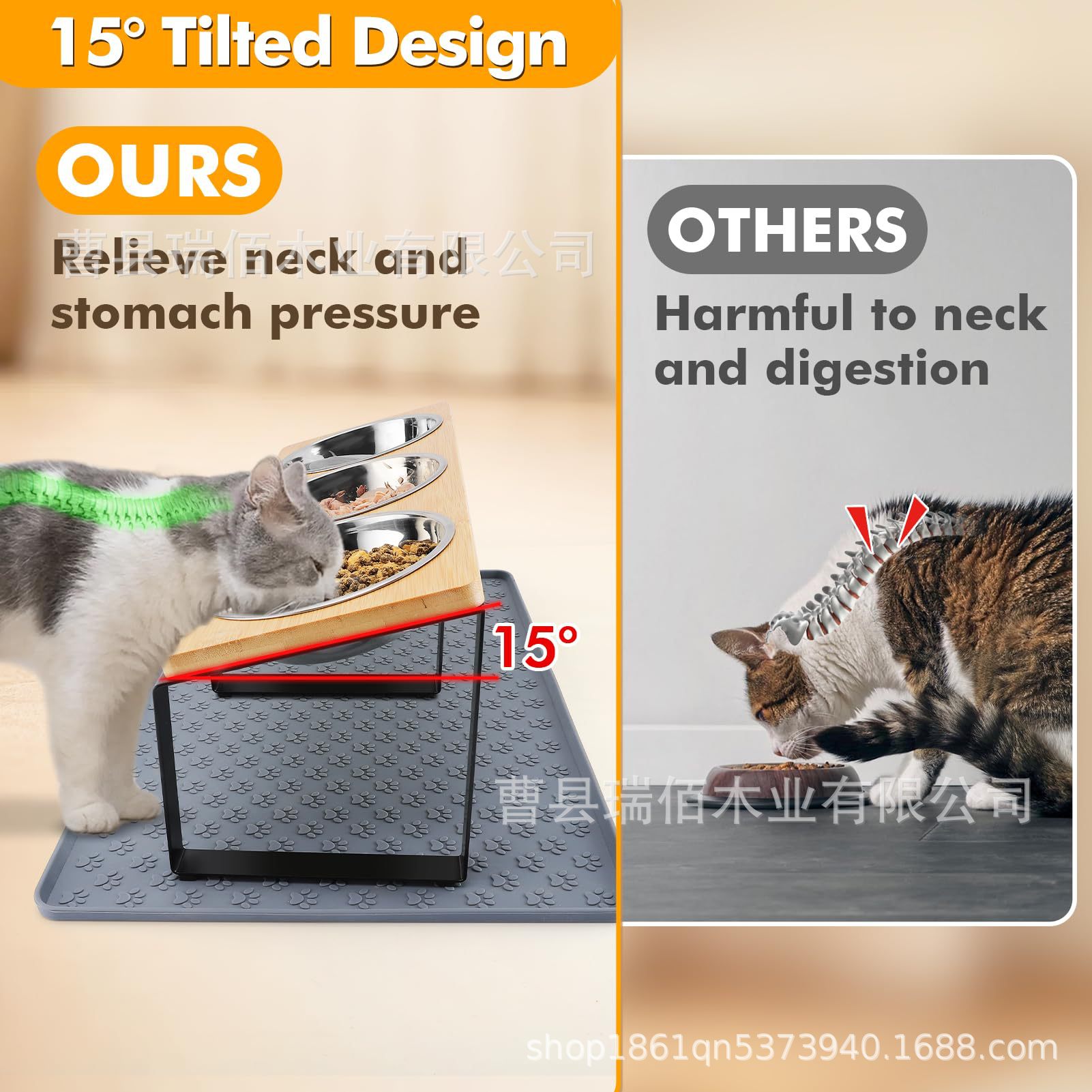 나무 고양이 그릇 랙, 애완동물 피더, 목 보호대, 경사진 이중 그릇 랙, 개밥 높이 그릇, 단단한 나무 식품 그릇 랙