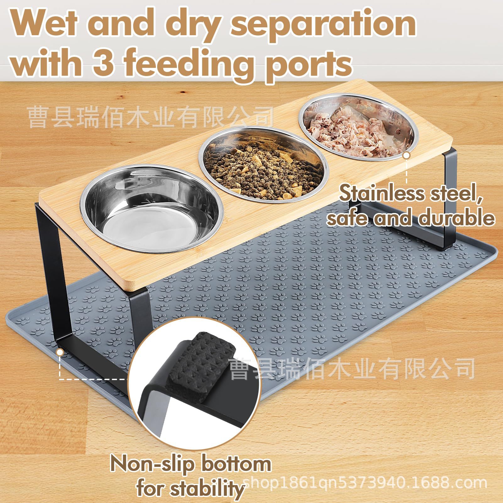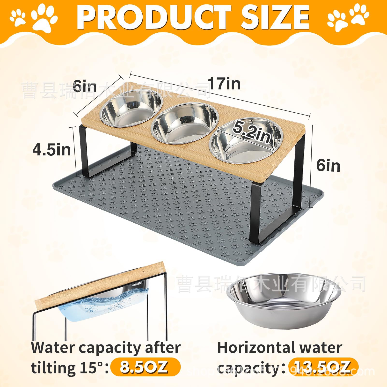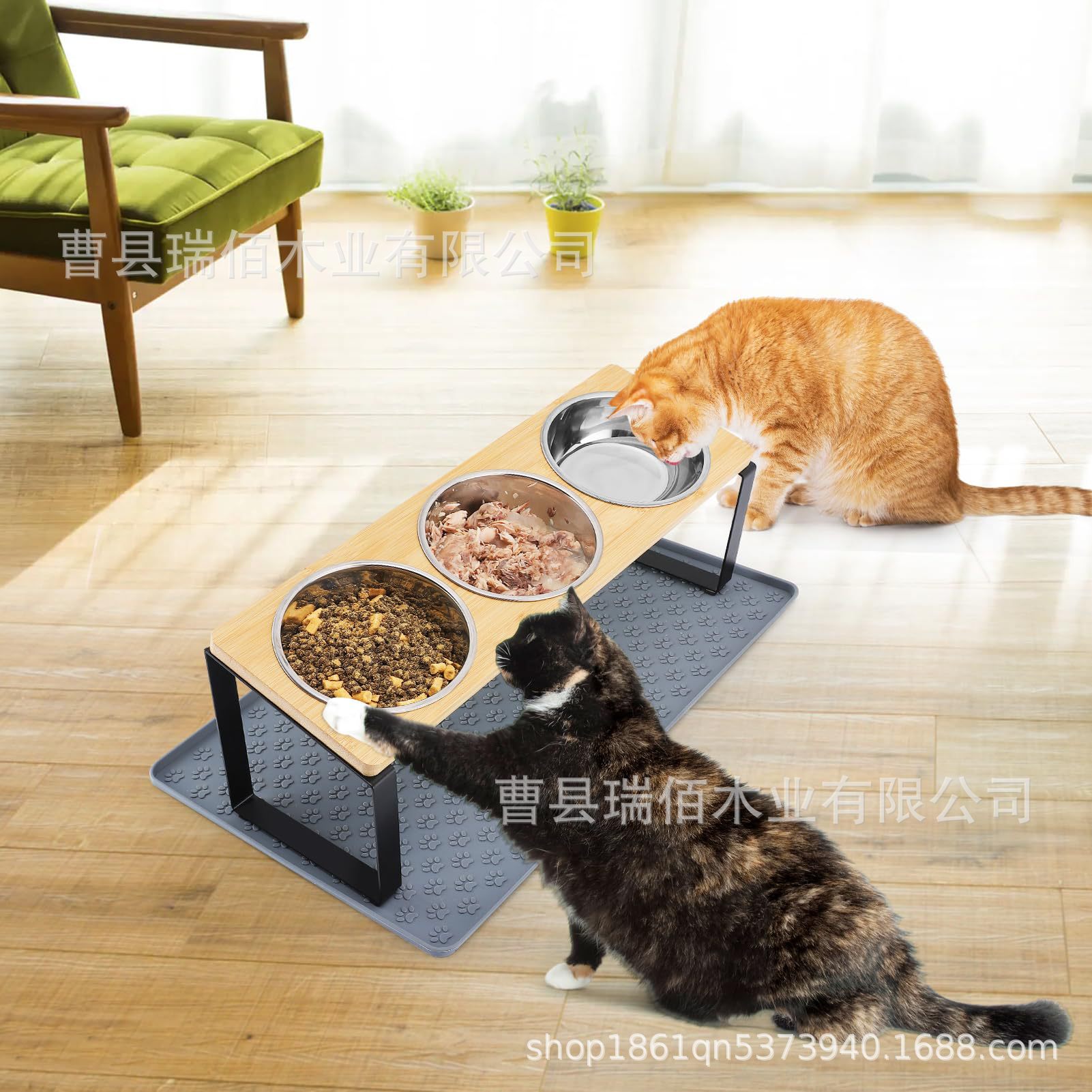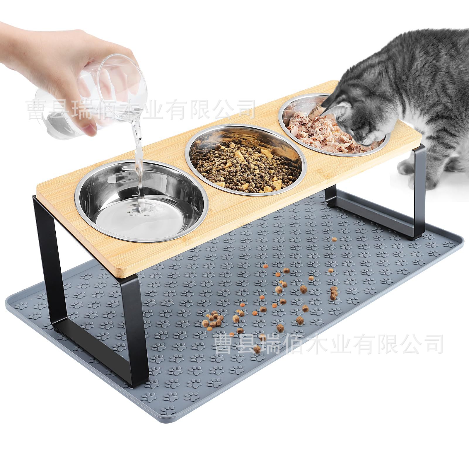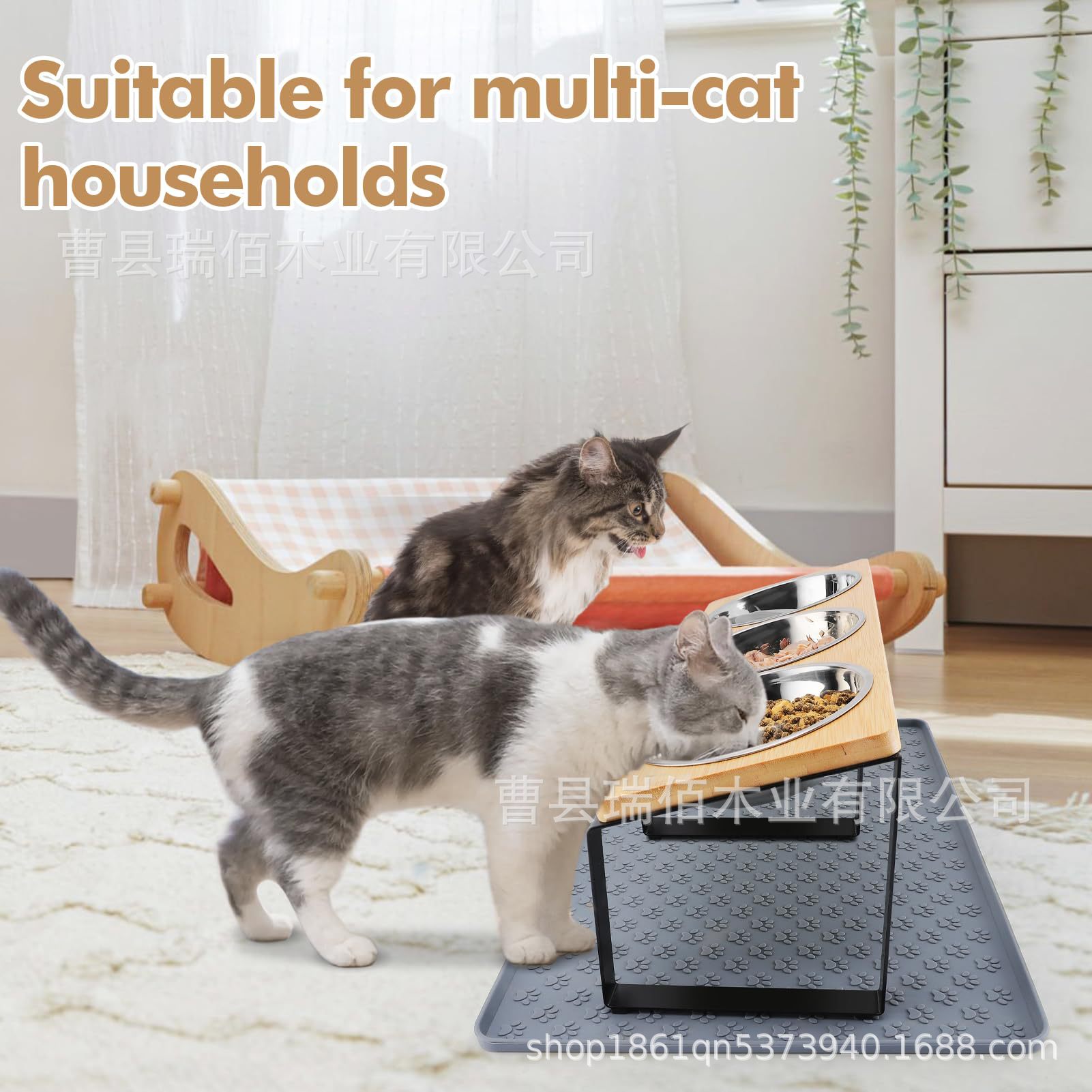 나무 고양이 그릇 랙, 애완동물 피더, 목 보호대, 경사진 이중 그릇 랙, 개밥 높이 그릇, 단단한 나무 식품 그릇 랙스토어 가기