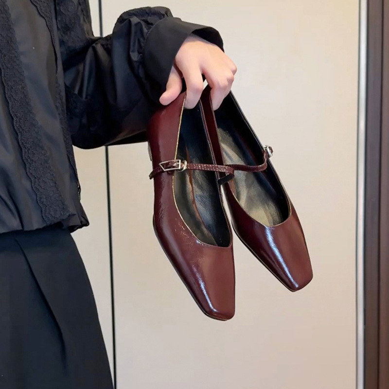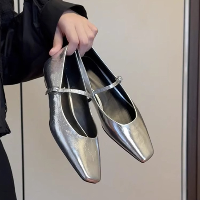양가죽 버전~ 천연 가죽 플랫 실버 레트로 원스트랩 메리제인 슈즈 여성용 2026 신상 얕은굽 웨이브 슈즈스토어 가기