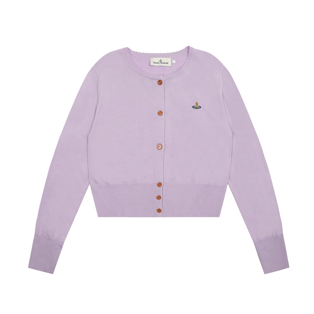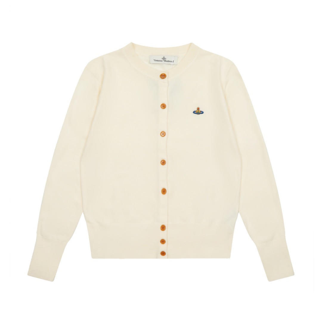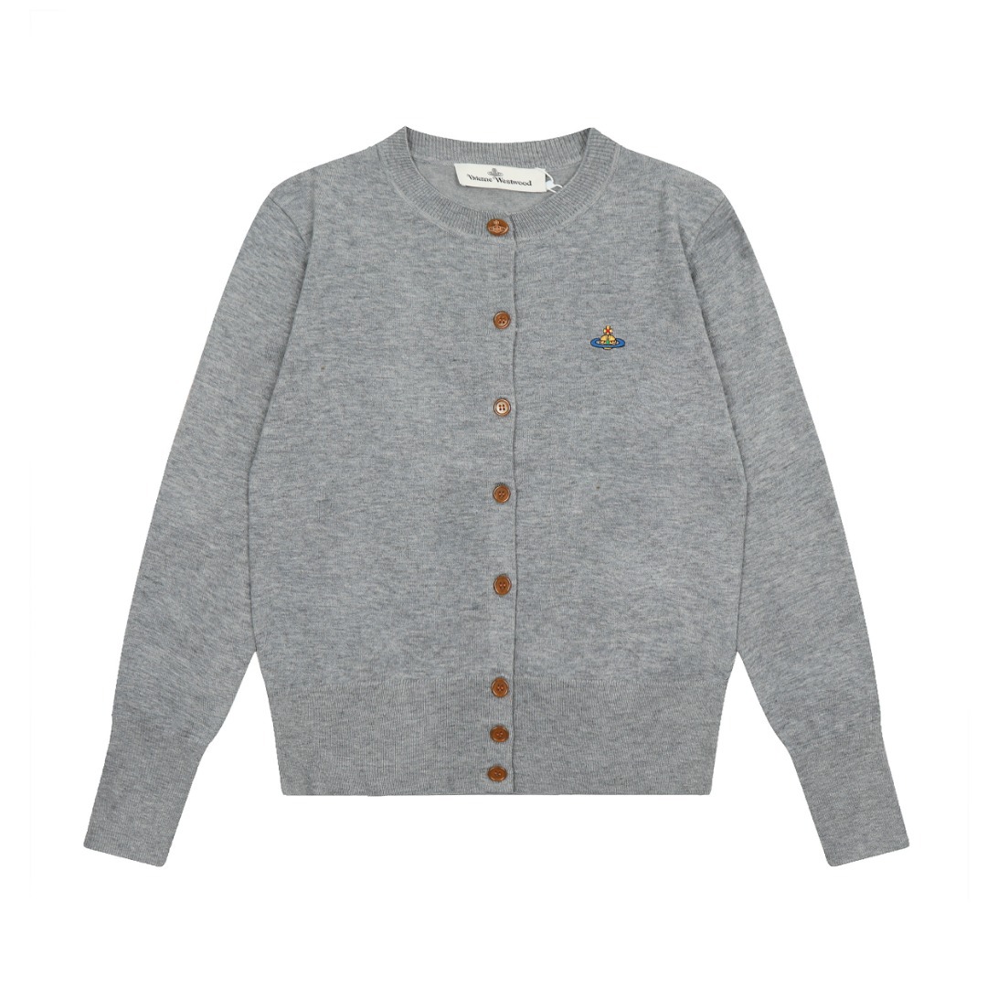 ViVienneWestwood West Queen Mother Vivienne Saturn 컬러 라벨 자수 여성 울 니트 스웨터 가디건스토어 가기