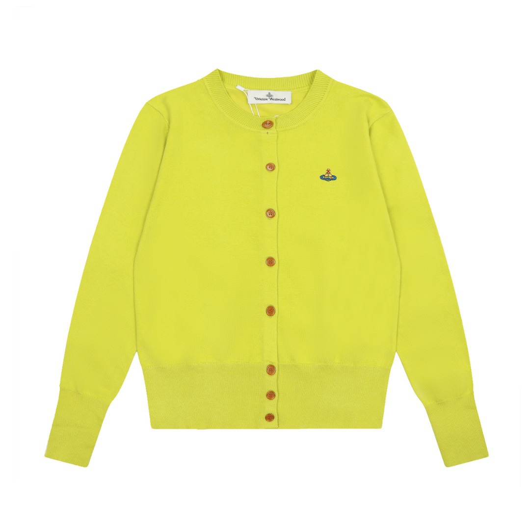 ViVienneWestwood West Queen Mother Vivienne Saturn 컬러 라벨 자수 여성 울 니트 스웨터 가디건