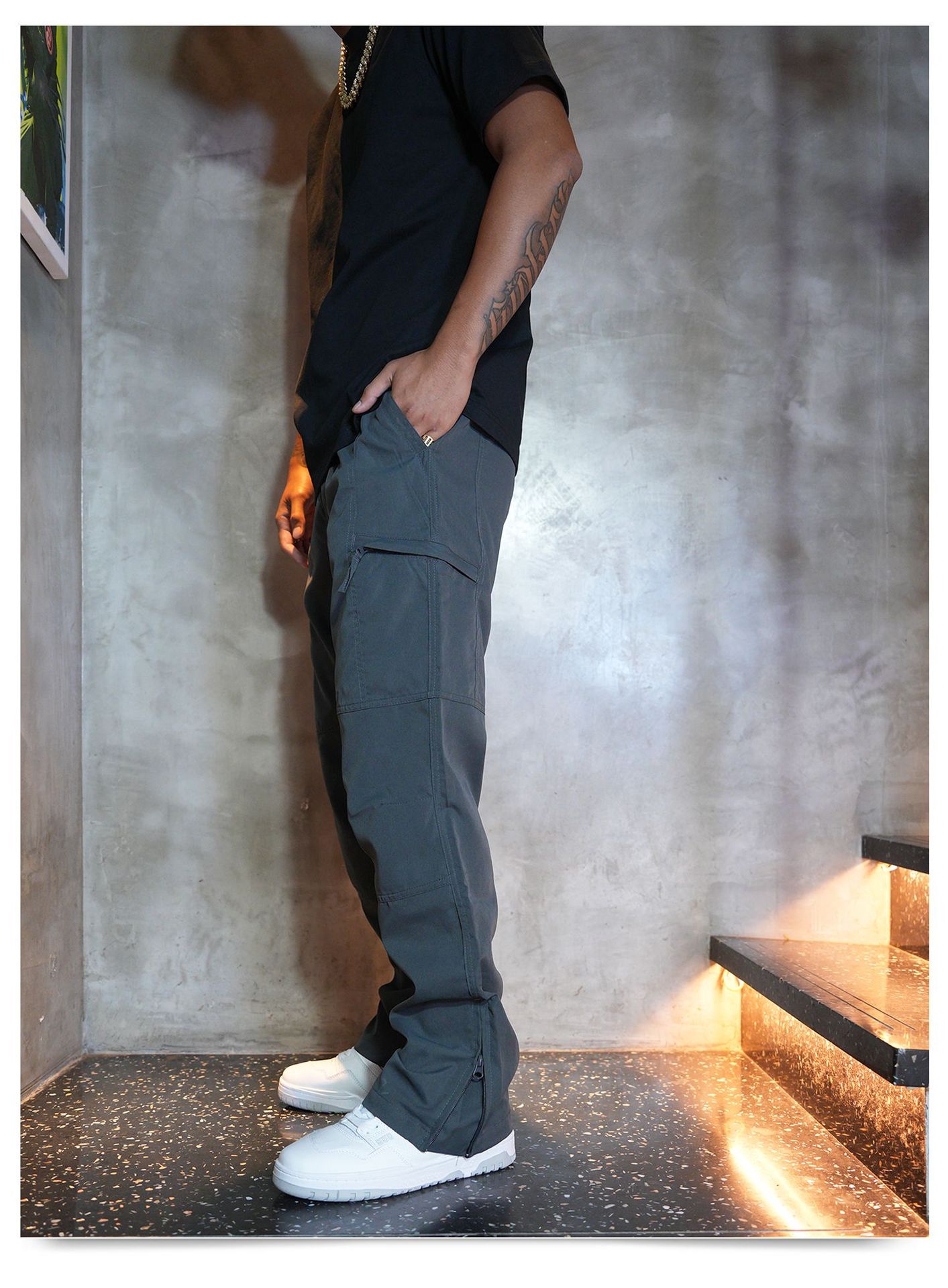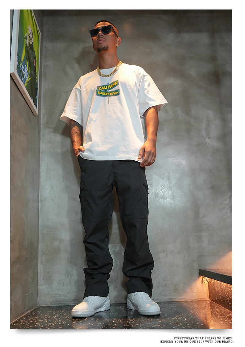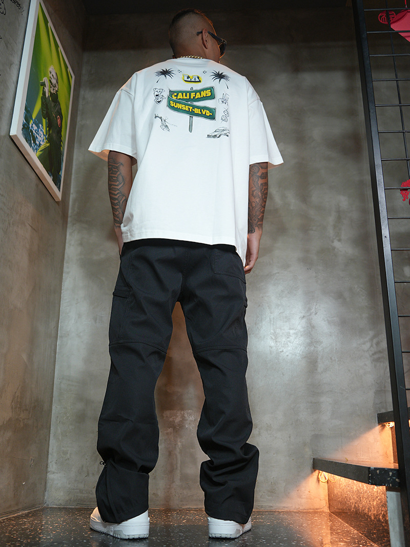아메리칸 스타일 봄 여름 하이 스트리트 기능성 아웃 도어 바지 캐주얼 바지 신축성있는 허리 아웃 도어 스트레이트 바지 루즈 남성 트렌디스토어 가기