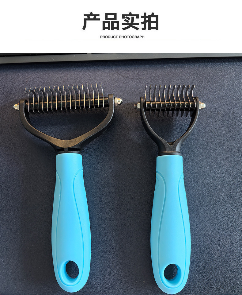 • 파란색 양면 애완동물 매듭 빗