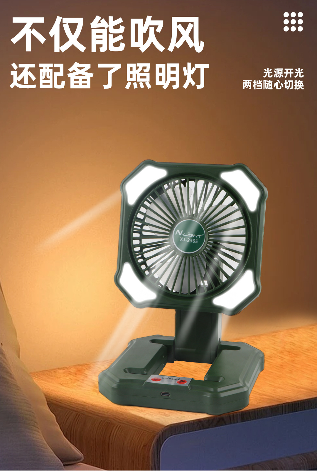 새로운 국경 간 캠핑 팬 휴대용 야외 휴대용 팬 분위기 야간 조명 팬 데스크탑 소형 팬스토어 가기