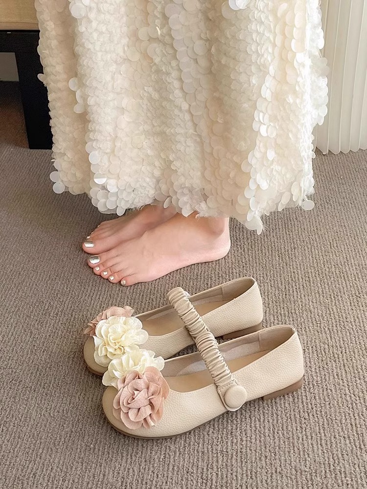 여성을위한 틈새 요정 스타일 펌프 신발 2025 여름 새로운 복고풍 꽃 부드러운 저녁 신발 Mary Jane scoop 신발