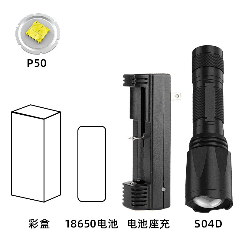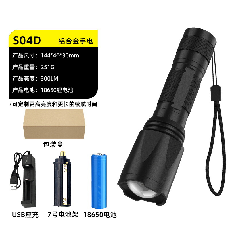 줌 장거리 강한 빛 손전등, 밝은 야외 하이킹 조명, 긴 배터리 수명, 휴대용 비상 조명스토어 가기