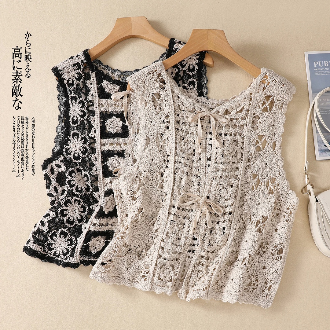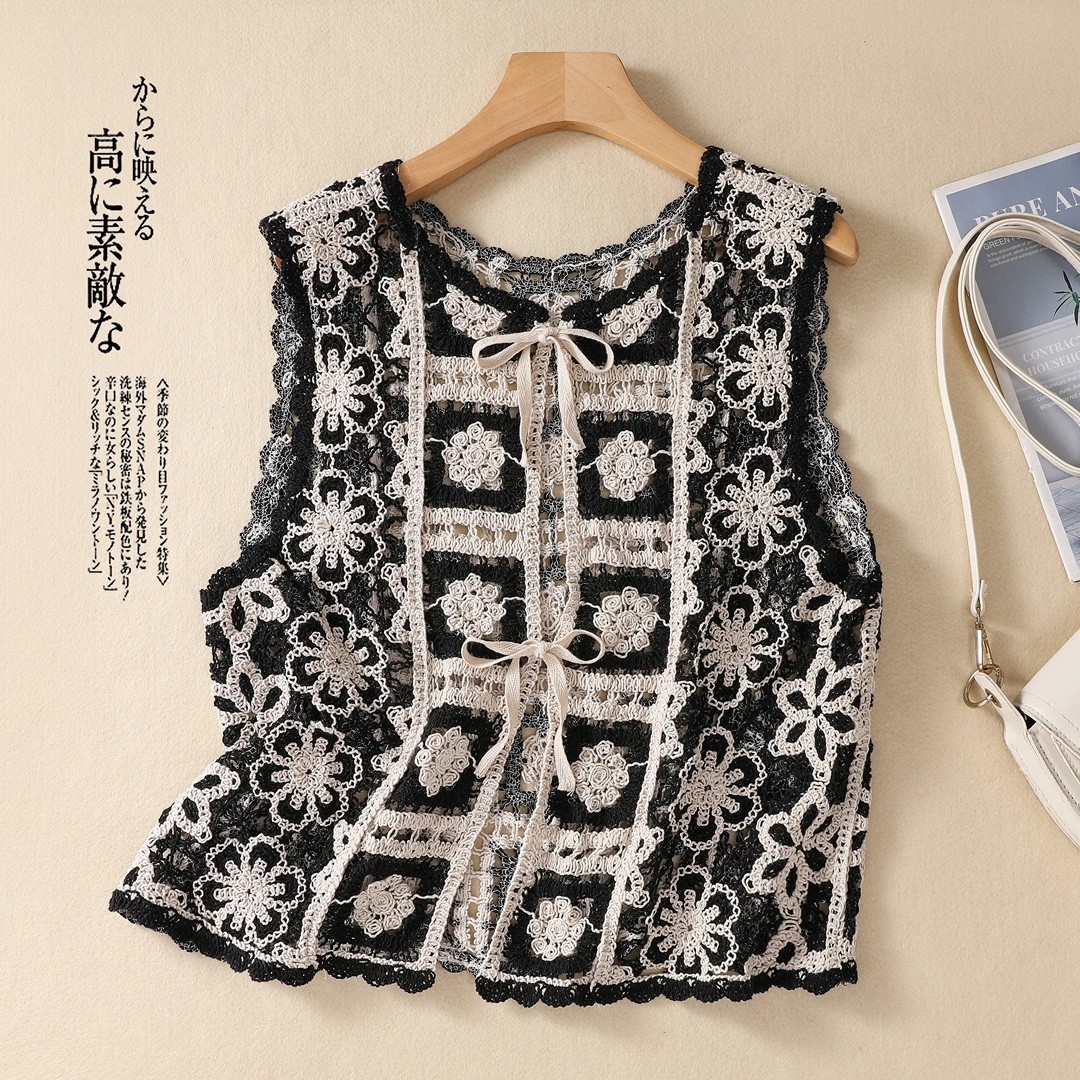 앞면과 뒷면 모두 양면으로 착용 가능, 다용도 복고풍 예술적 레이어드 조끼, 뜨개질 레이스 업 중공 땋은 가을 여성용 가디건스토어 가기