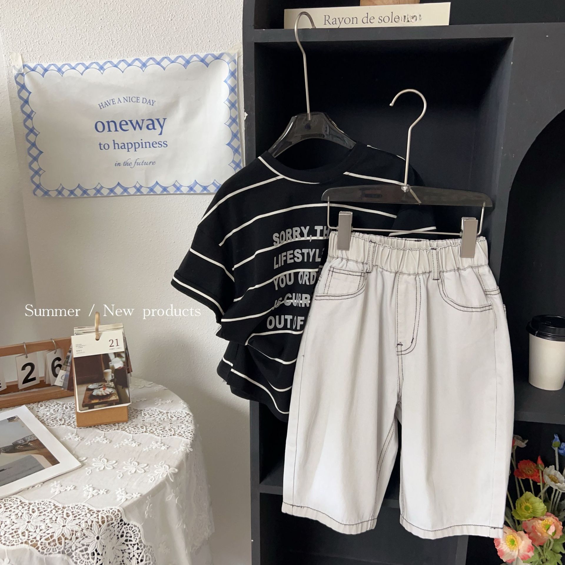 아동 바지 2026 여름 신상품 A68134 남아 단색 중대형 아동용 한국 스타일 심플 스티치 데님 반바지스토어 가기