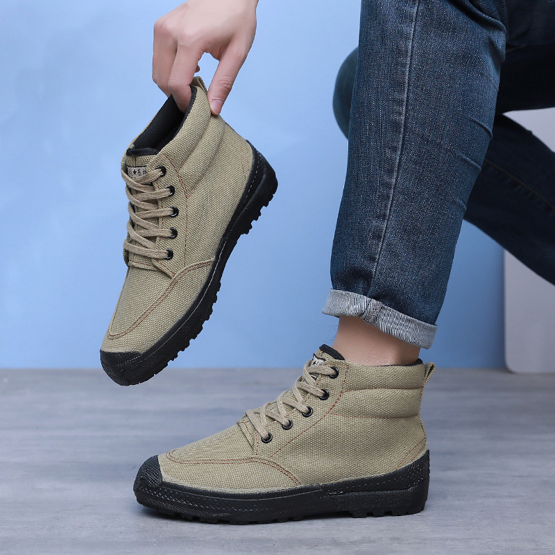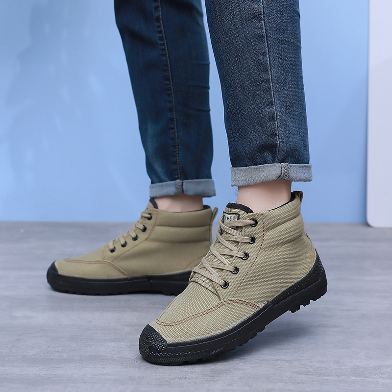 봄 싱글 슈즈, 야외 스포츠 하이탑 슈즈, 내마모성 미끄럼 방지 건설 현장 작업화, 고무 밑창 고무 슈즈, 노동 보호 남성용 신발스토어 가기
