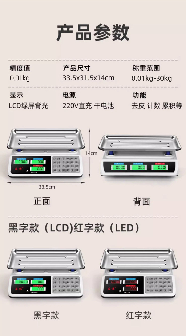 전자 저울 고정밀 상업용 소형 그램 저울 야채 판매 가정용 주방 식품 킬로그램 저울