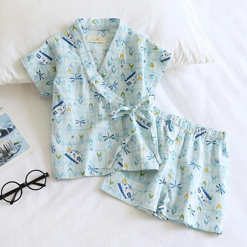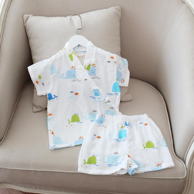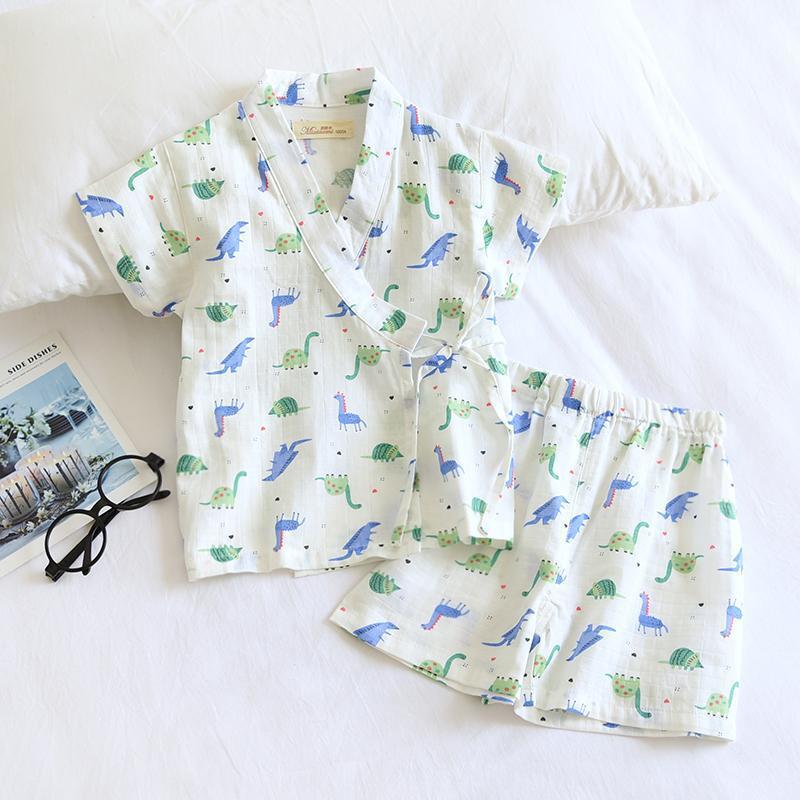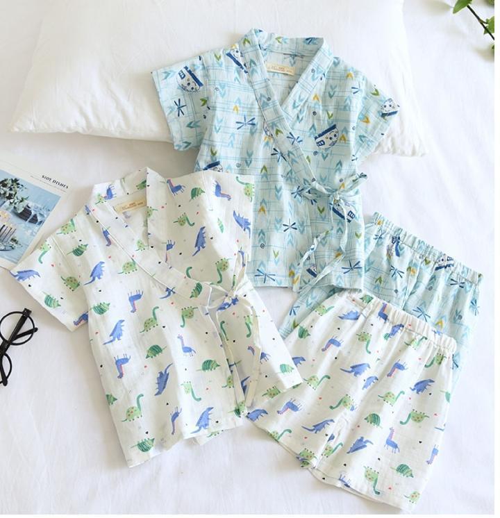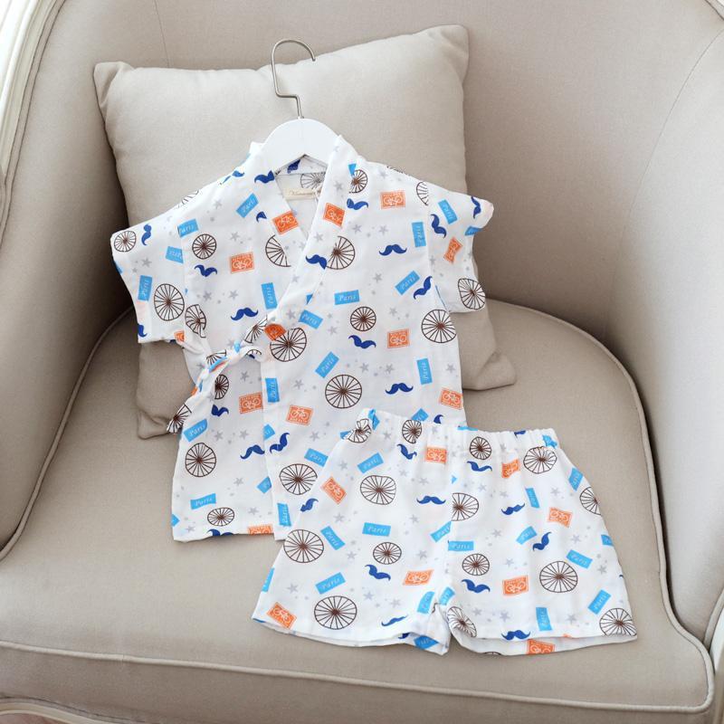 남아 여름 면 거즈 가정복, 아동 기모노, 사우나 스팀 슈트, 얇은 잠옷 세트, 유아용 유카타 에어컨 슈트스토어 가기