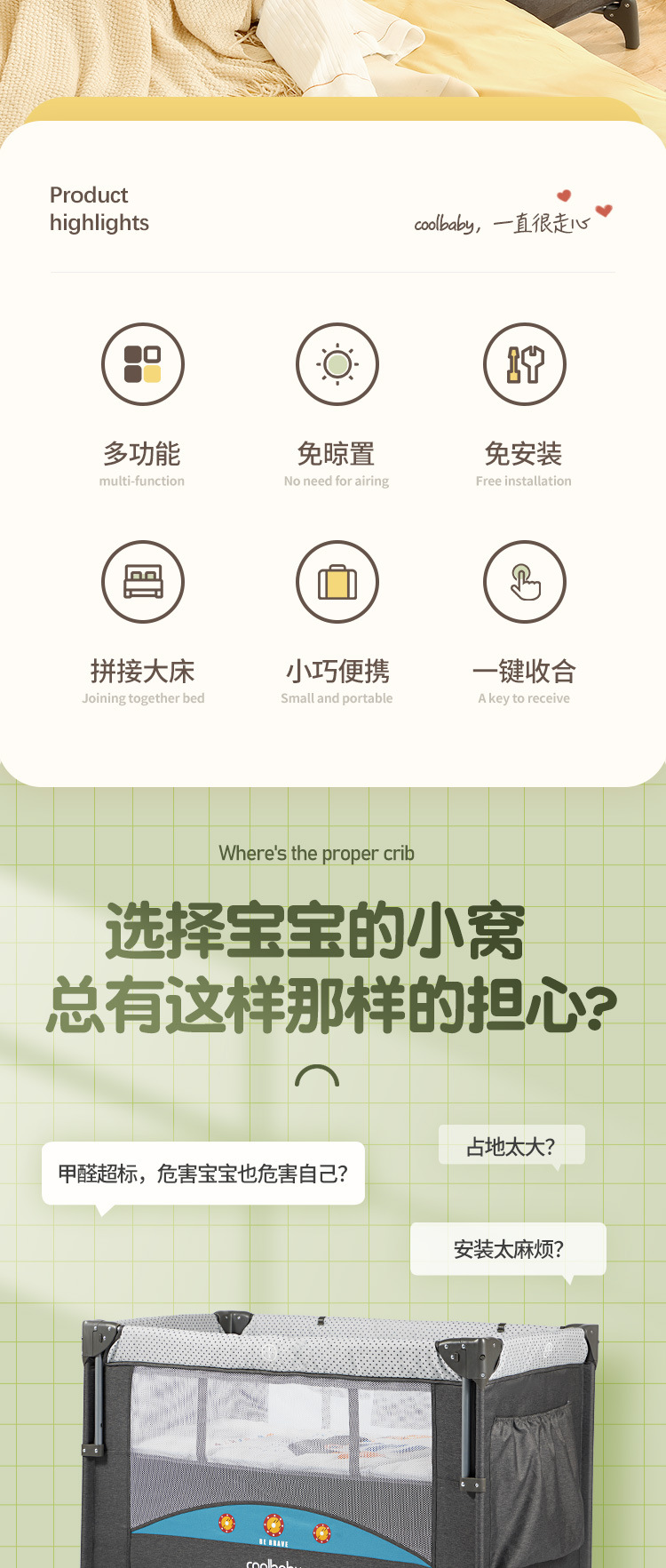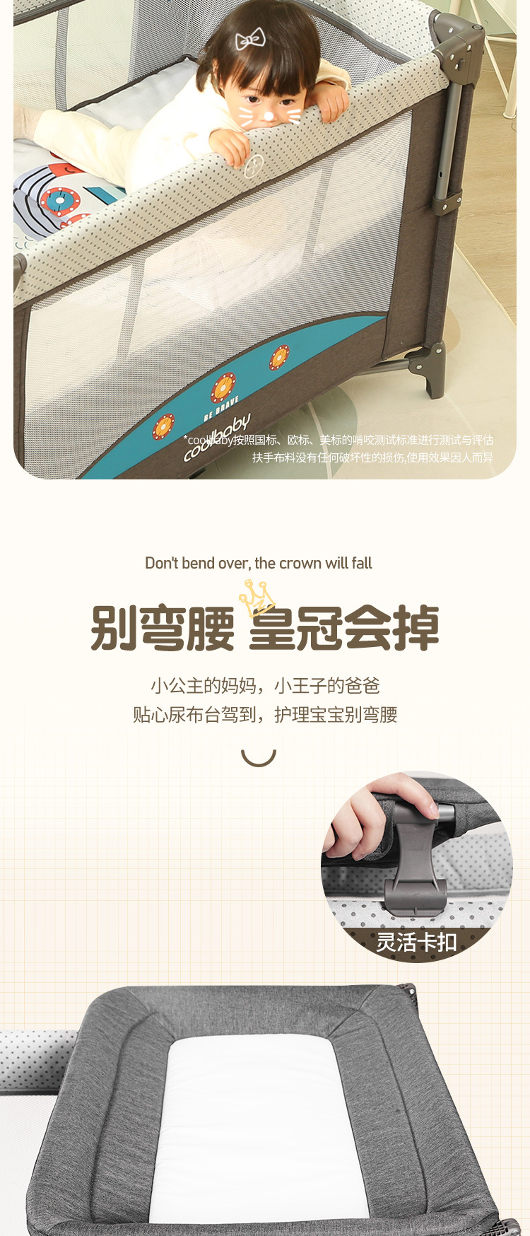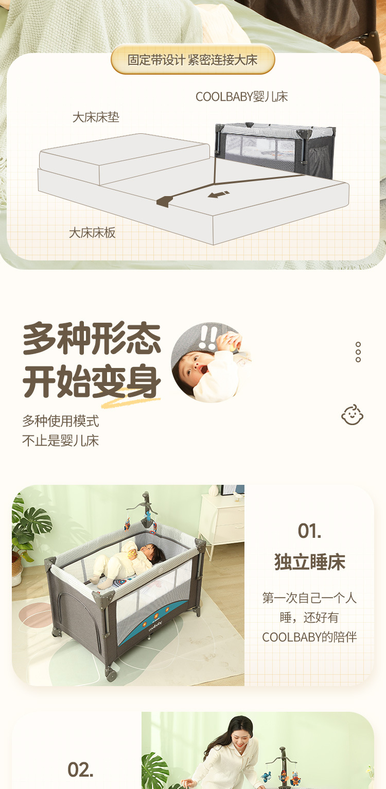 쿠두딩 맞춤형 아기침대, 접이식 다기능 아기 요람 침대, 휴대용 이동식 조립식 침대