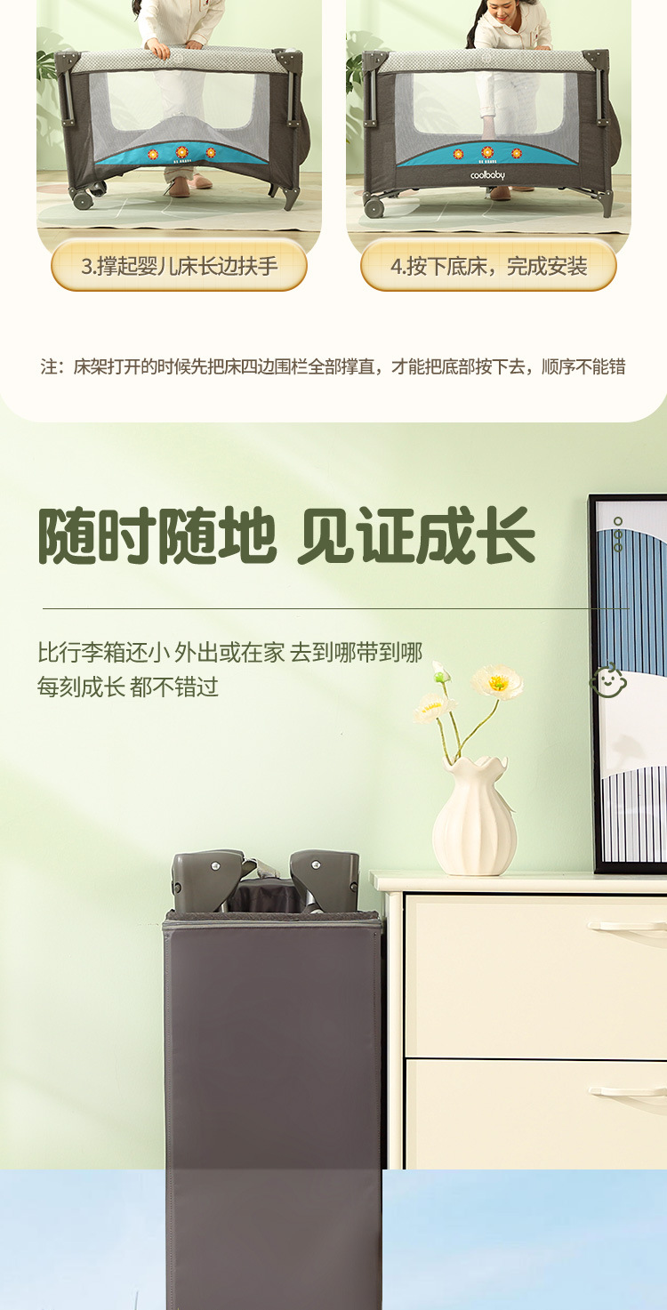 쿠두딩 맞춤형 아기침대, 접이식 다기능 아기 요람 침대, 휴대용 이동식 조립식 침대스토어 가기
